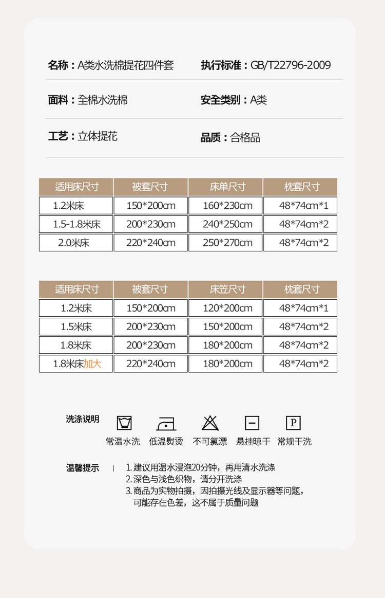 2.0m床笠款四件套(被套220x240cm床笠180x200cm) | ¥199.00 |