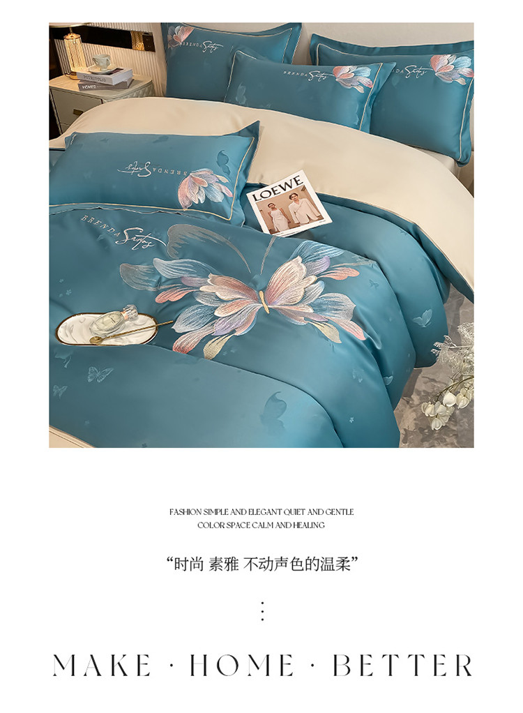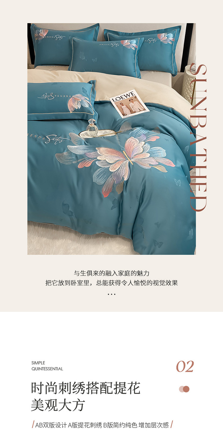 (总)涵宸家纺 2025新款全棉磨毛刺绣四件套系列-花蝴蝶,花蝴蝶-灰,花蝴蝶-奶白,花蝴蝶-浅粉