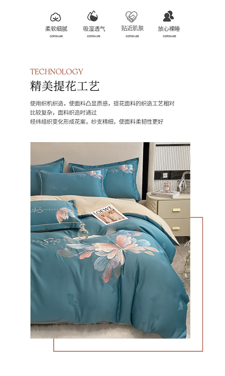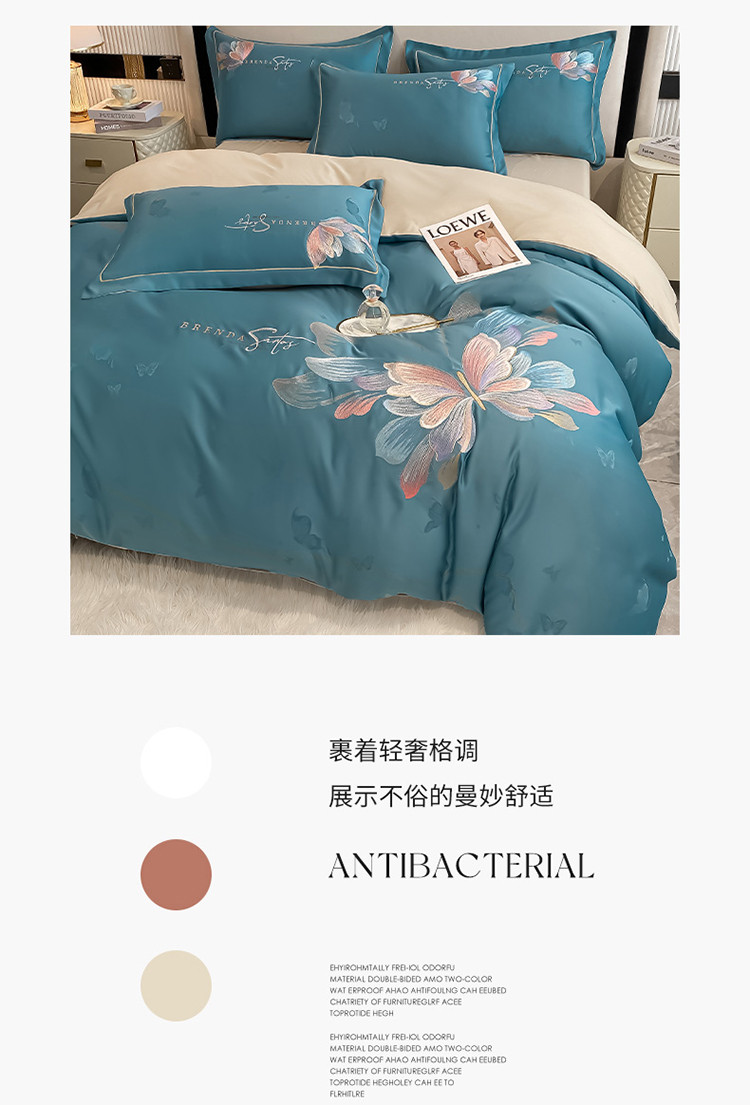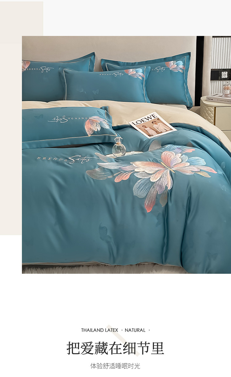 商品名称:涵宸 2022新款提花刺绣四件套 花花世界-绅士蓝