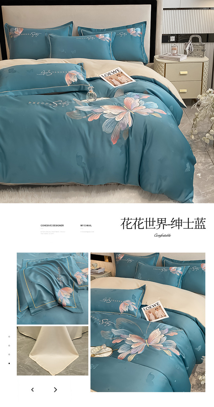涵宸 2022新款提花刺绣四件套 花花世界-绅士蓝