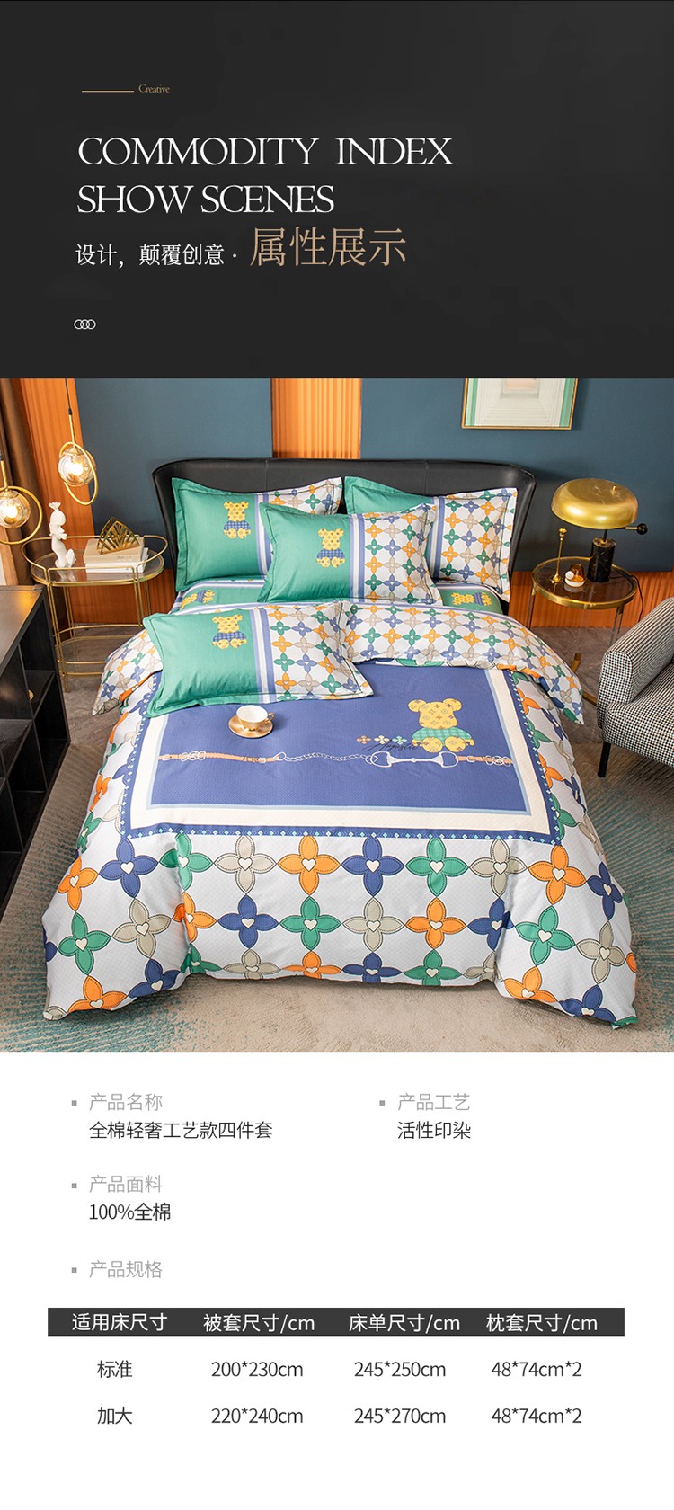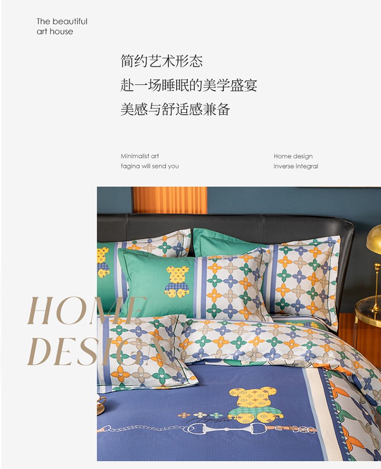 (总)雲归梦 2025春夏新款全棉纯棉刺绣潮熊学院派系列四件套,比尔熊,肯尼熊,穆赛熊,熊猫熊,学院熊,雅莱熊