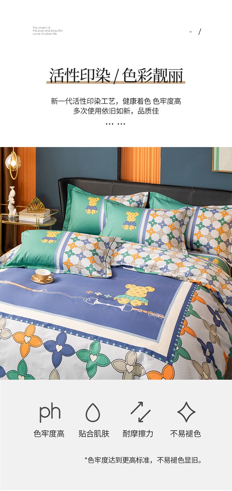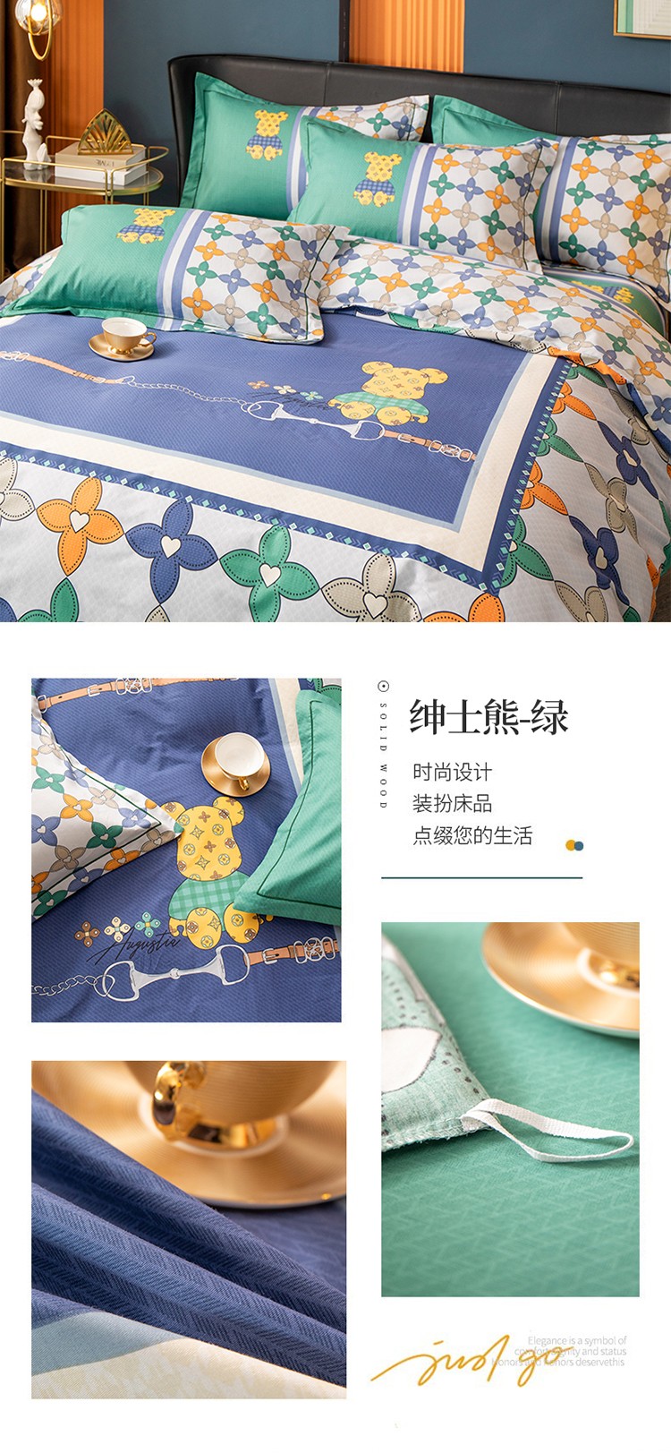 商品名称:雲归梦 2022新款全棉大版四件套 格子花型 绅士熊-绿
