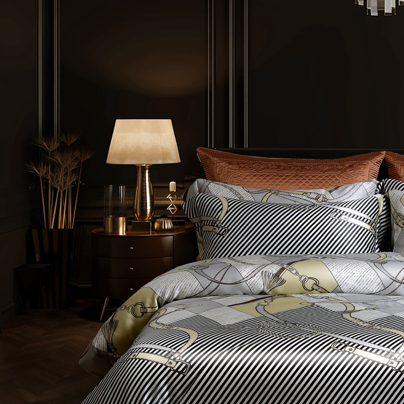 晋瑞红顶鹅绒馆 新款全真丝数码印花四件套 菲拉格慕
