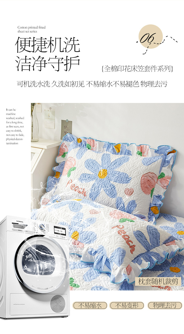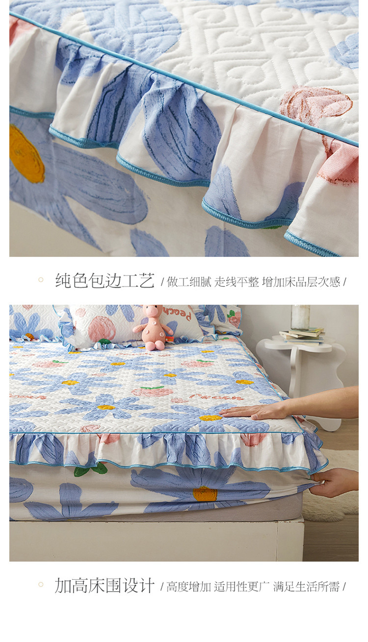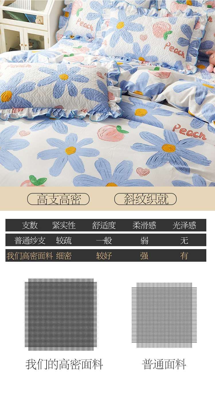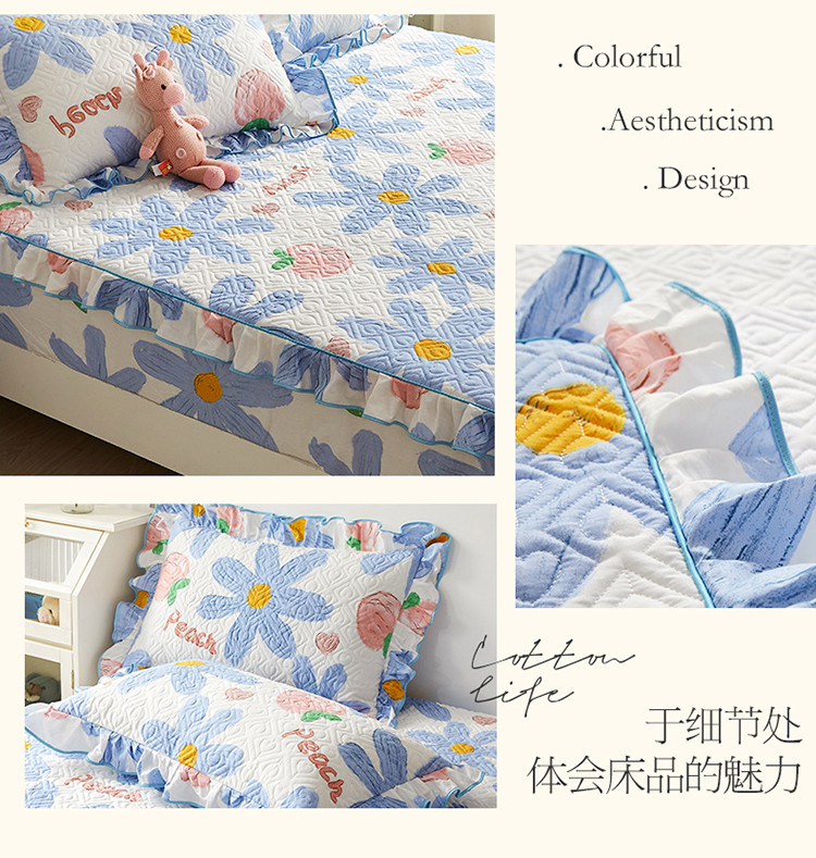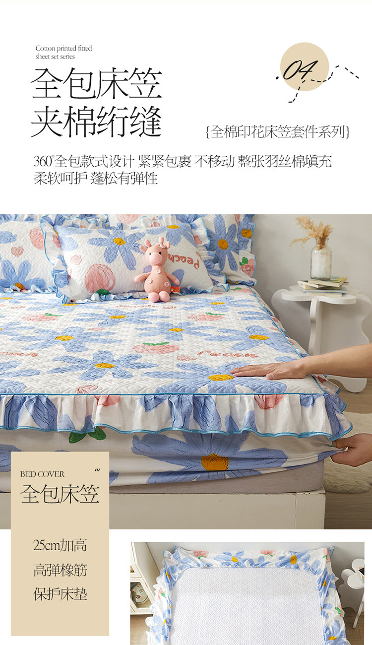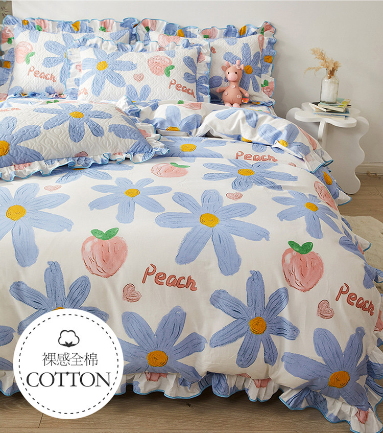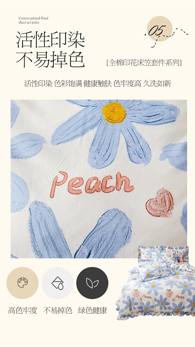 当前位置: 91家纺网 > 商品网购 > 床品套件 > 四件套 > 全棉普通四件套 > 宜凡家纺 2023新款全棉印花花边床笠款四件套 静待花开蓝