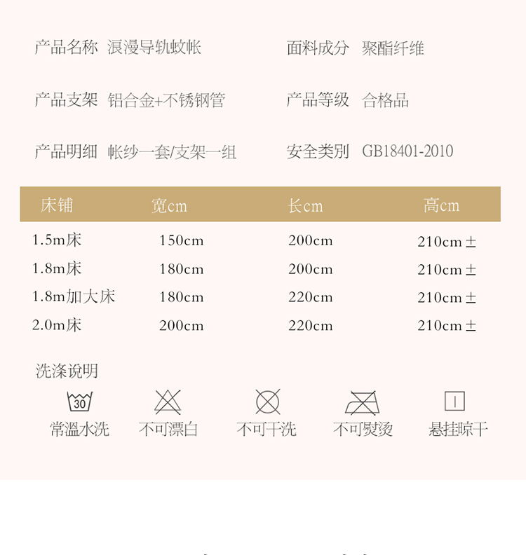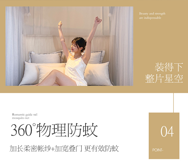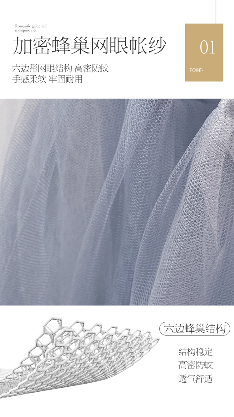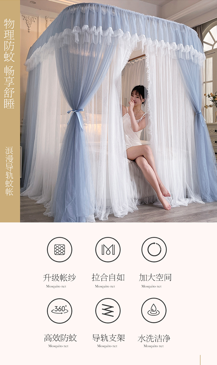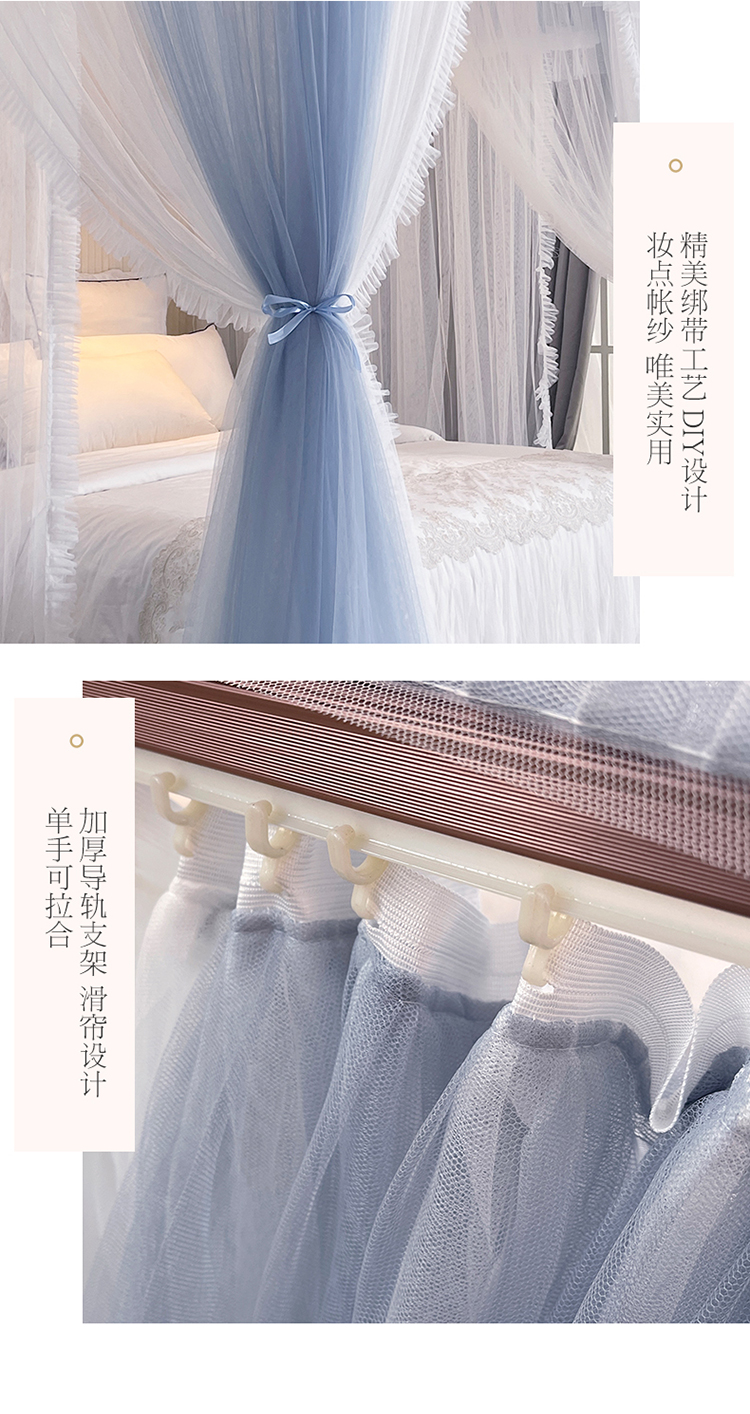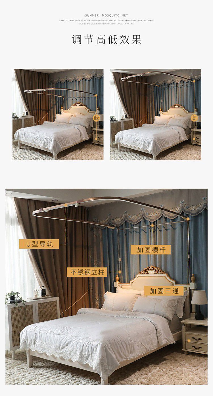 商品名称:宝莱利家纺 U型拉幕导轨双层加密蚊帐-田园风情 加强铝合金可升降烤漆支架