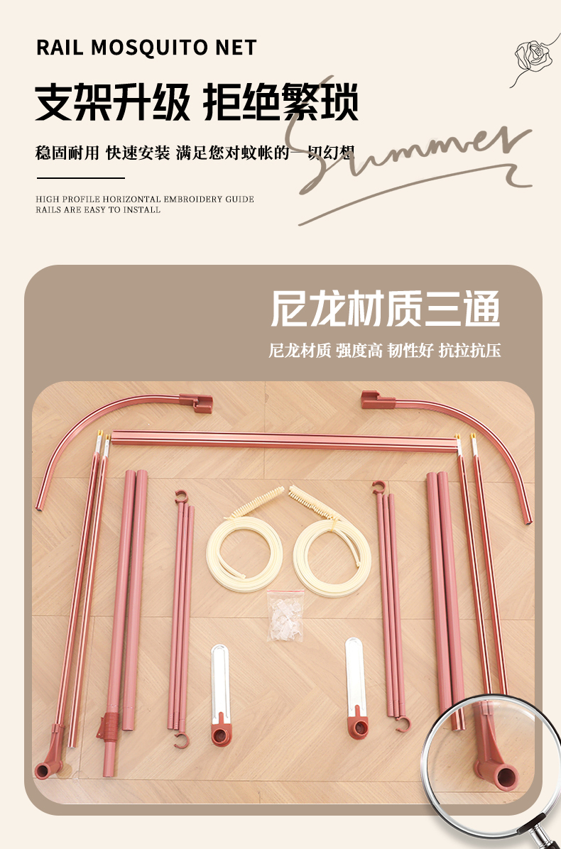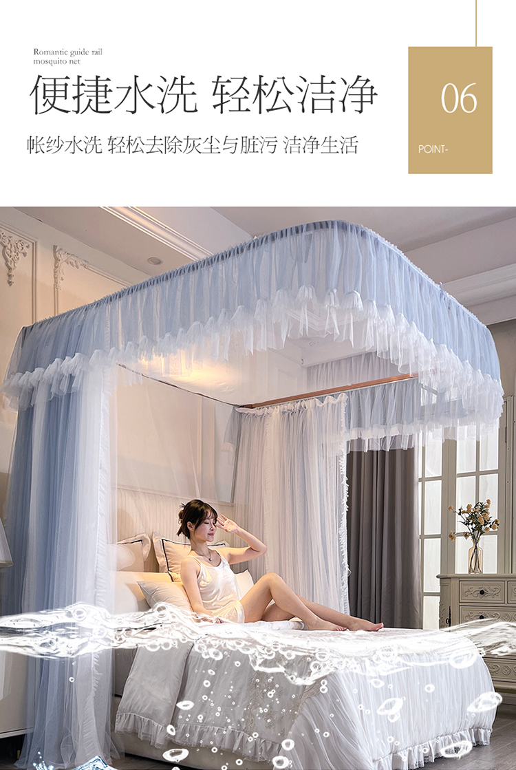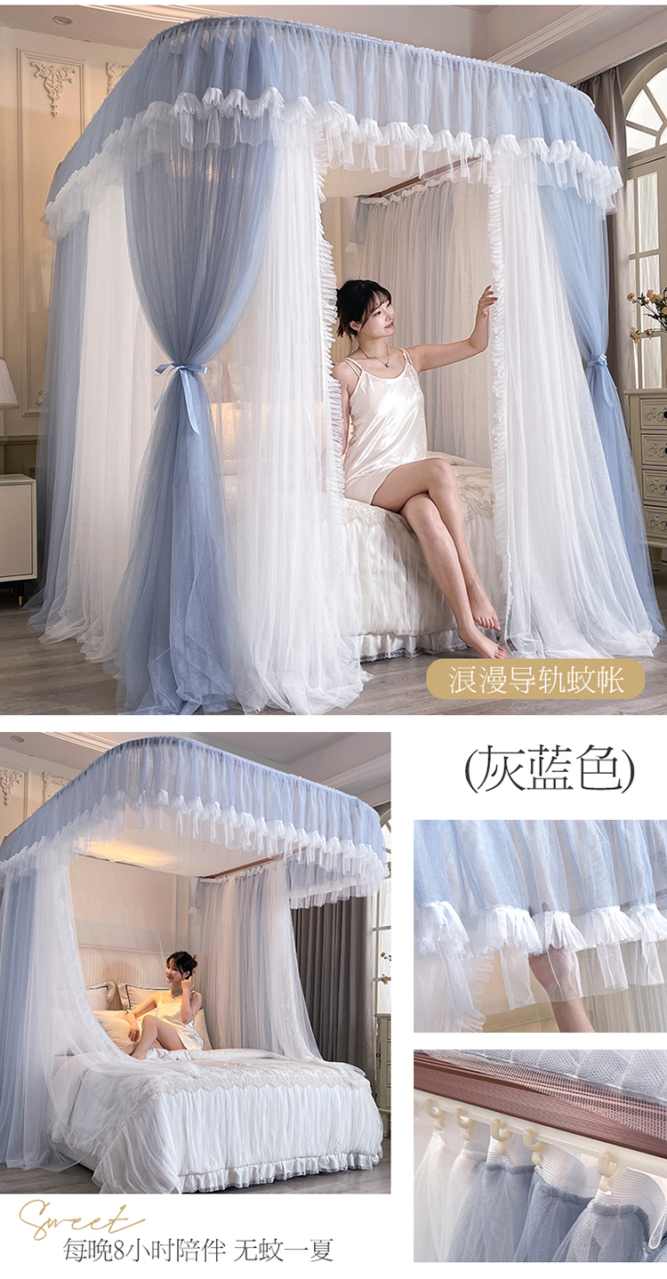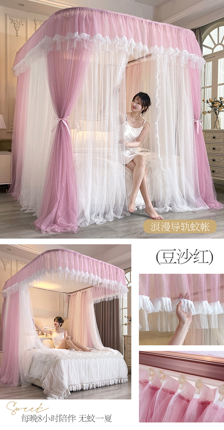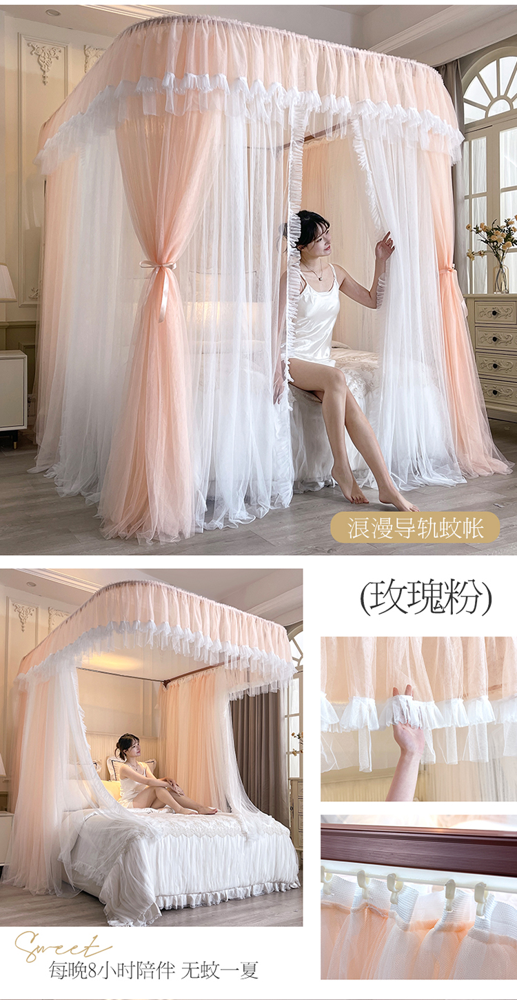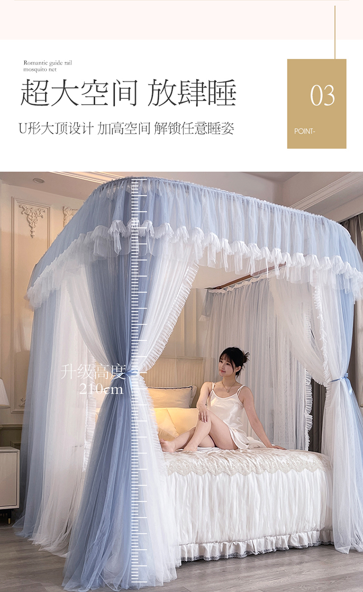 宝莱利家纺 U型拉幕导轨双层加密蚊帐-田园风情 加强铝合金可升降烤漆支架