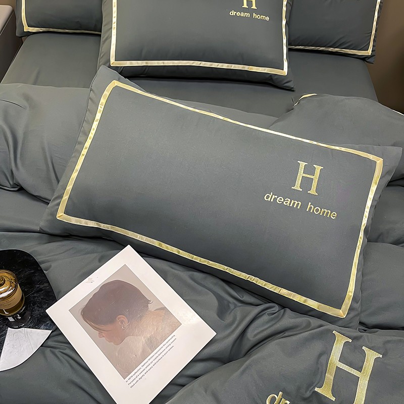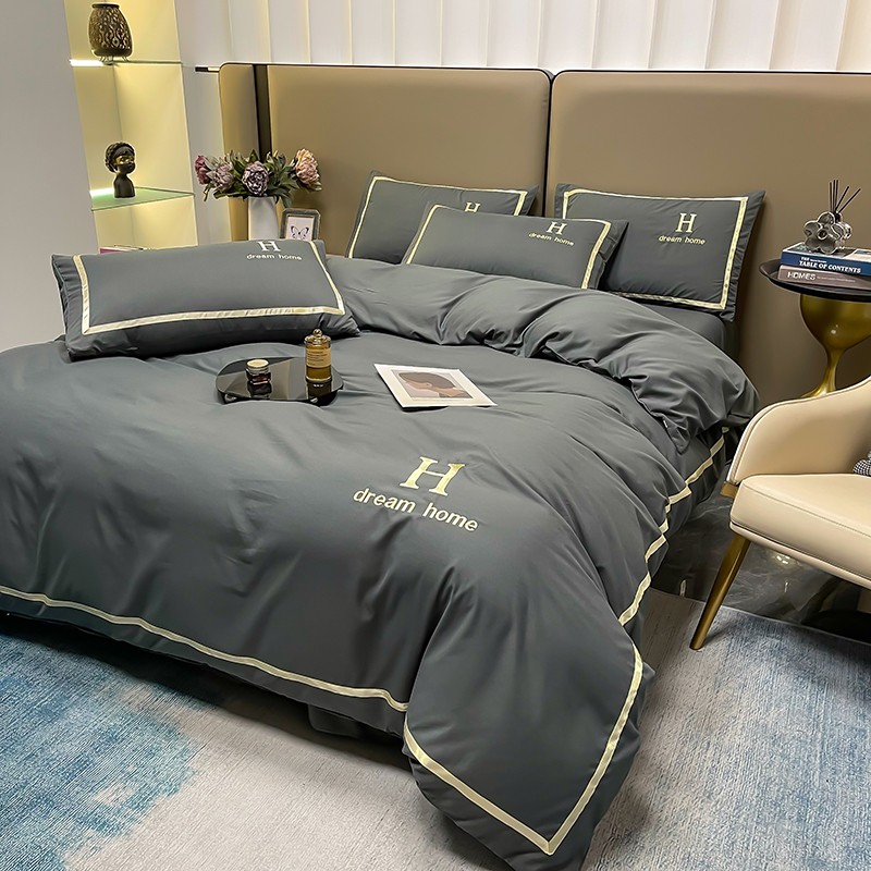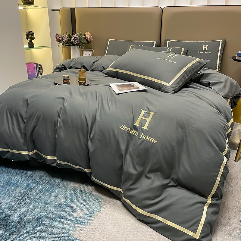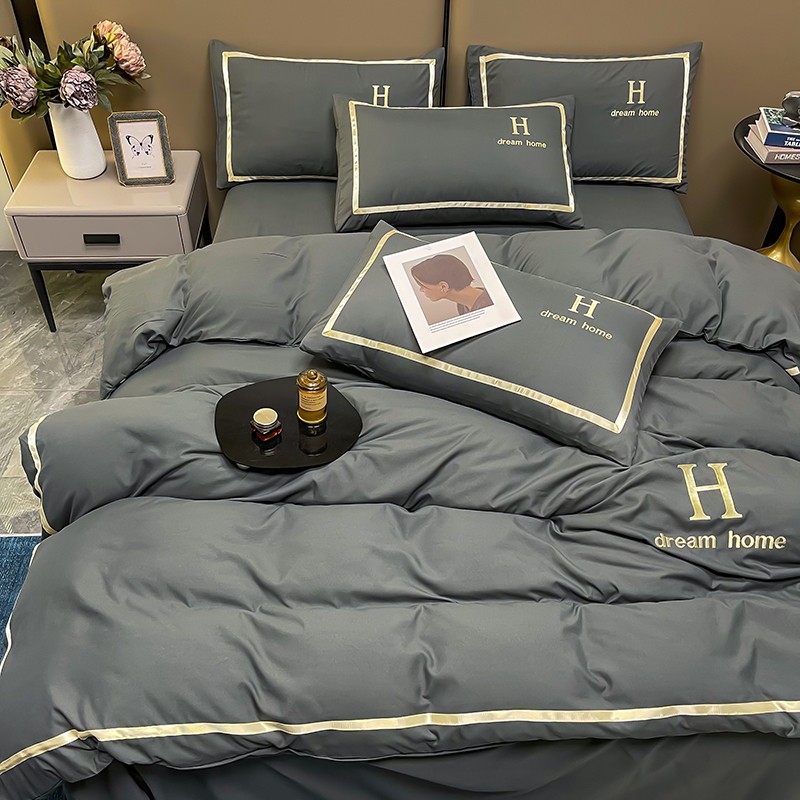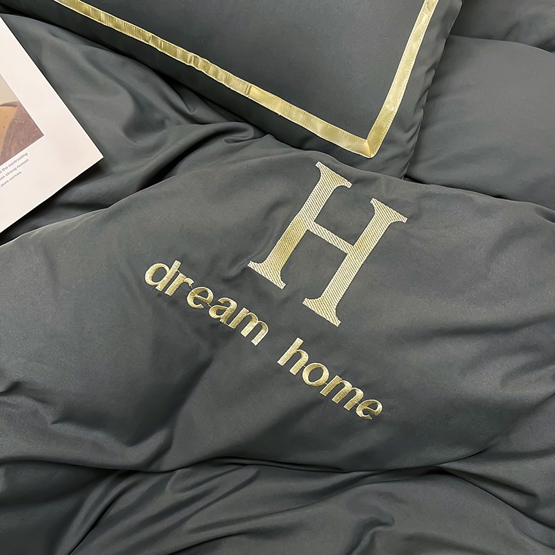 千希家纺 2022新款直播大H水洗棉绣花磨毛四件套大H-高级灰