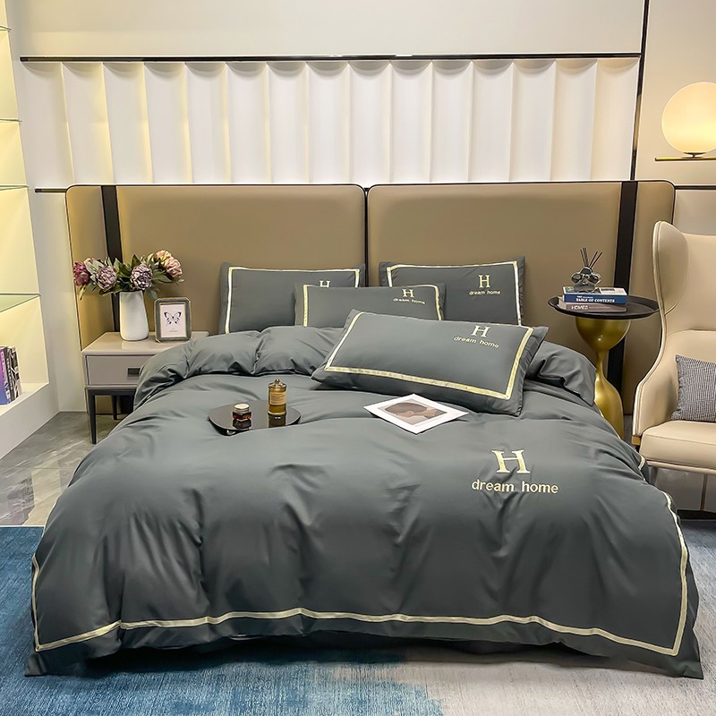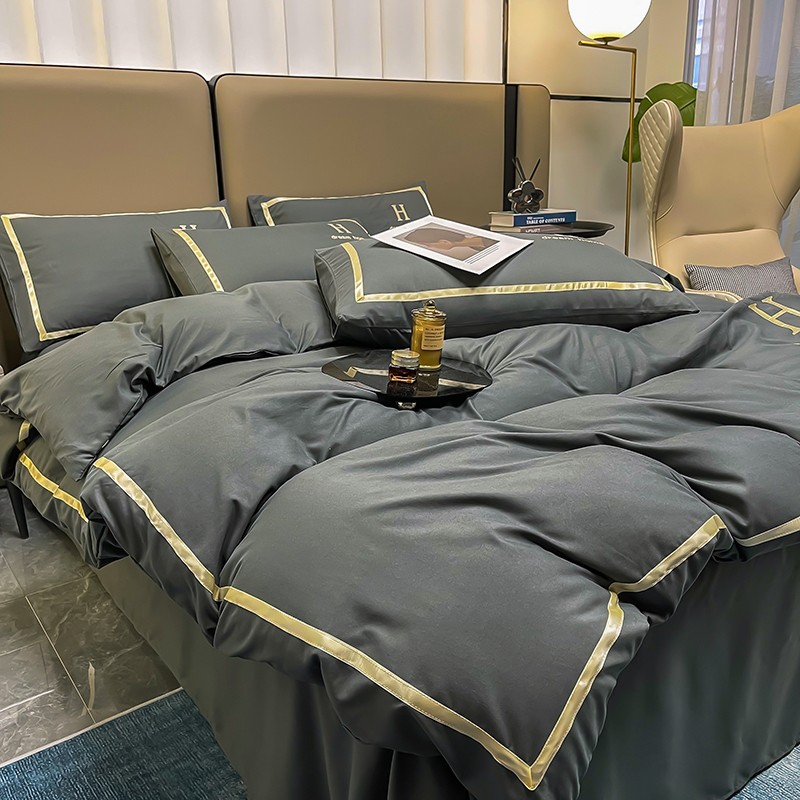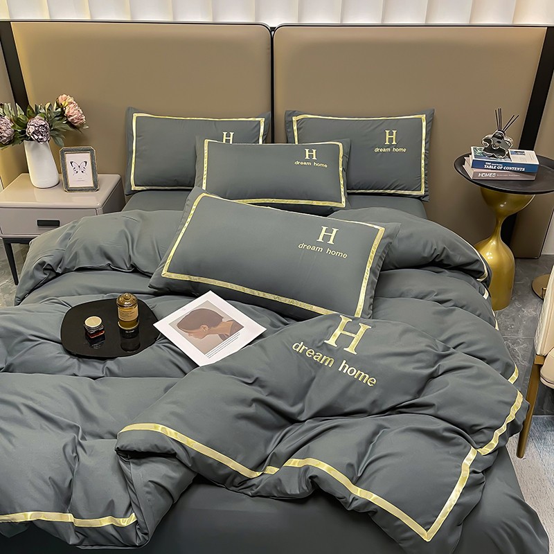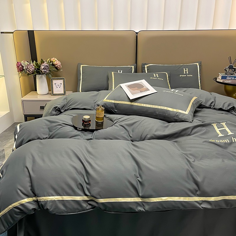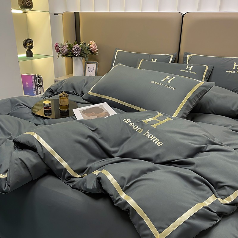 千希家纺 2022新款直播大H水洗棉绣花磨毛四件套大H-高级灰