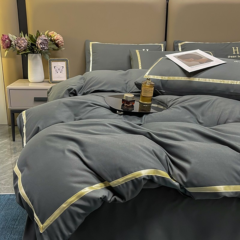 (总)千希家纺 2025新款轻奢简约亲肤棉绣花刺绣四件套-赛尔系列,赛尔-星耀黑,赛尔-蜜桃粉,赛尔-莫尼灰,赛尔-雾霾蓝