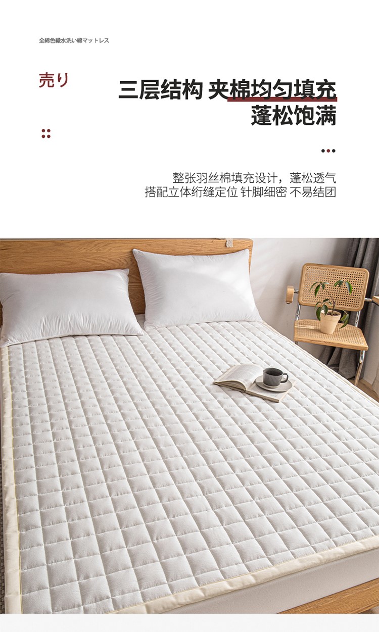 商品名称:东宇 2022新款A类全棉色织水洗棉夹棉床垫 白