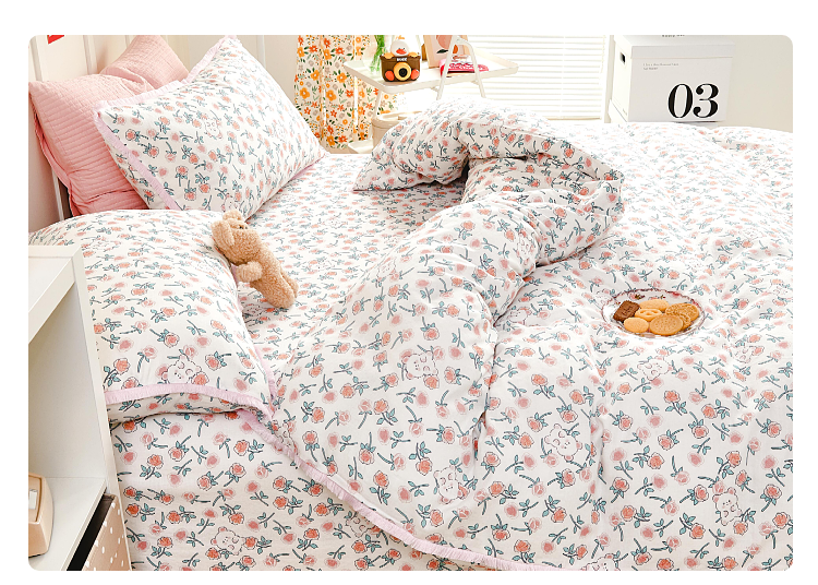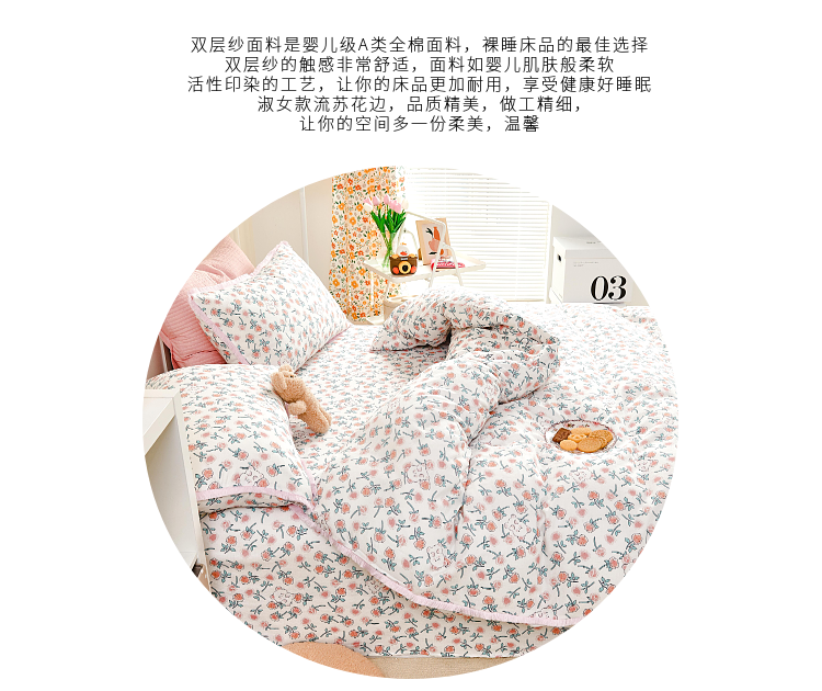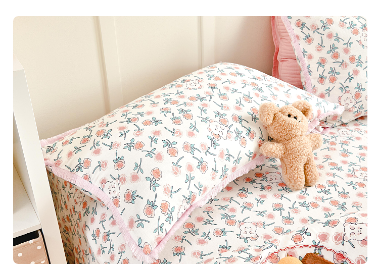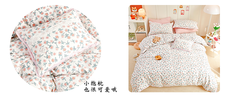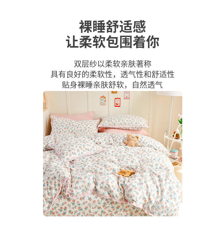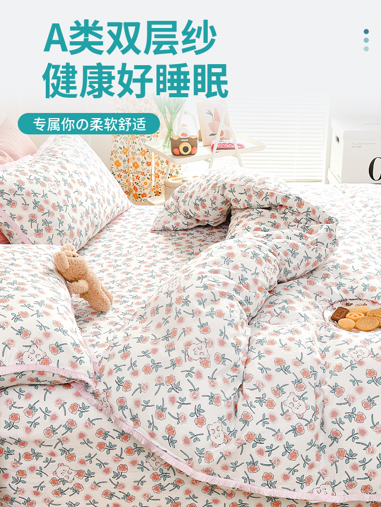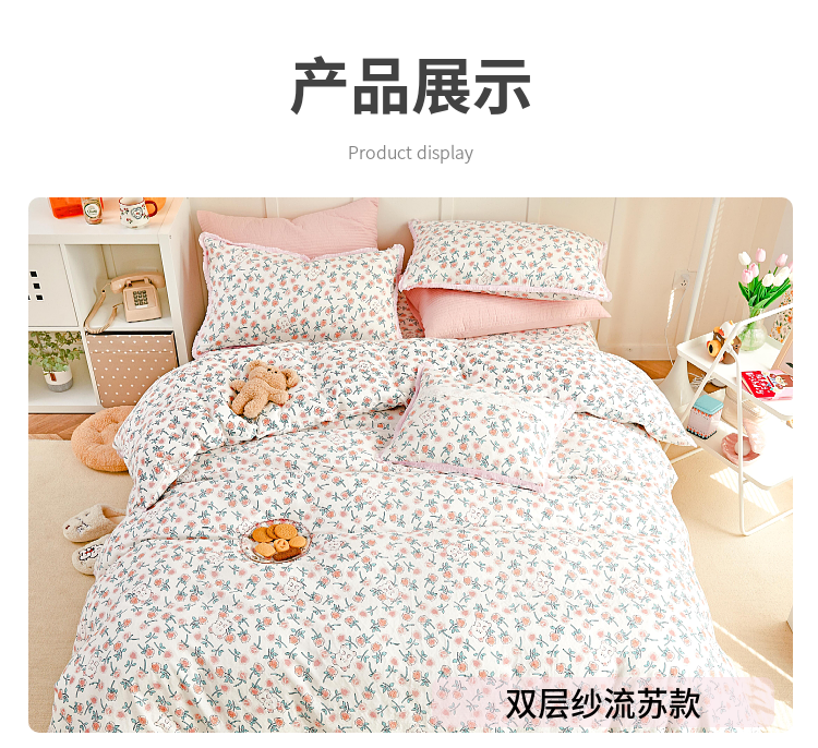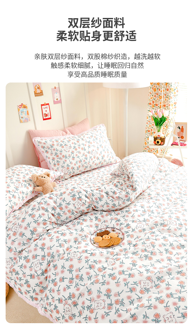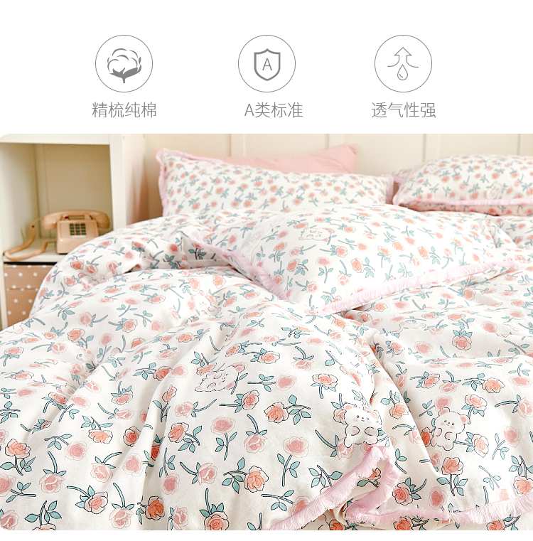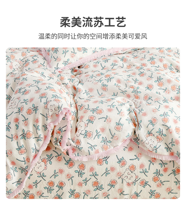 商品名称:亲亲公主2025新款小清新碎花韩版花边双层纱四件套 玫瑰小熊