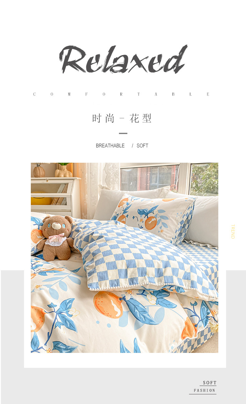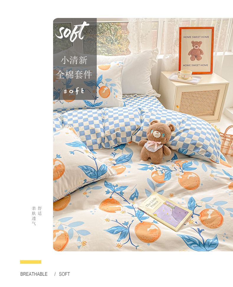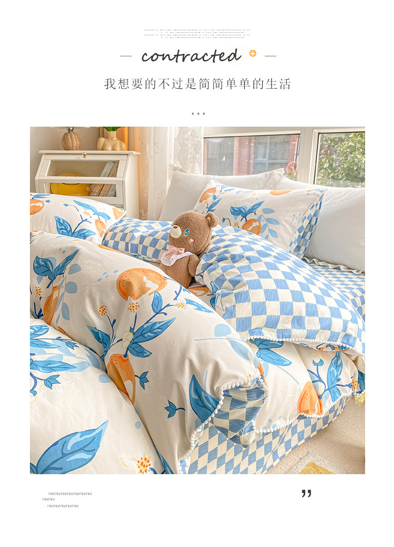 捌月 2024新款全棉ins小球球款四件套 小蜜桔