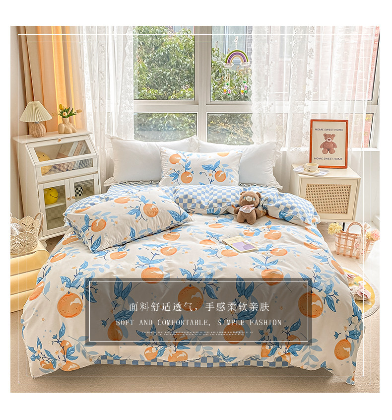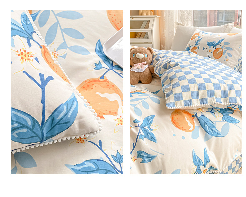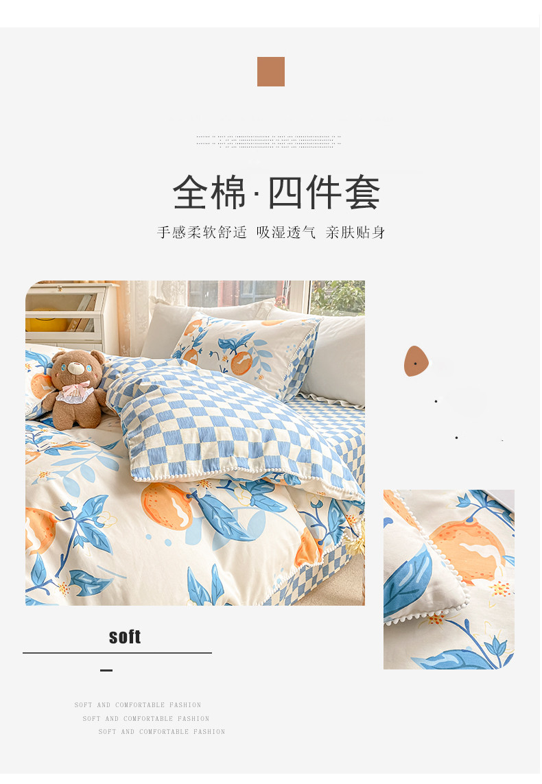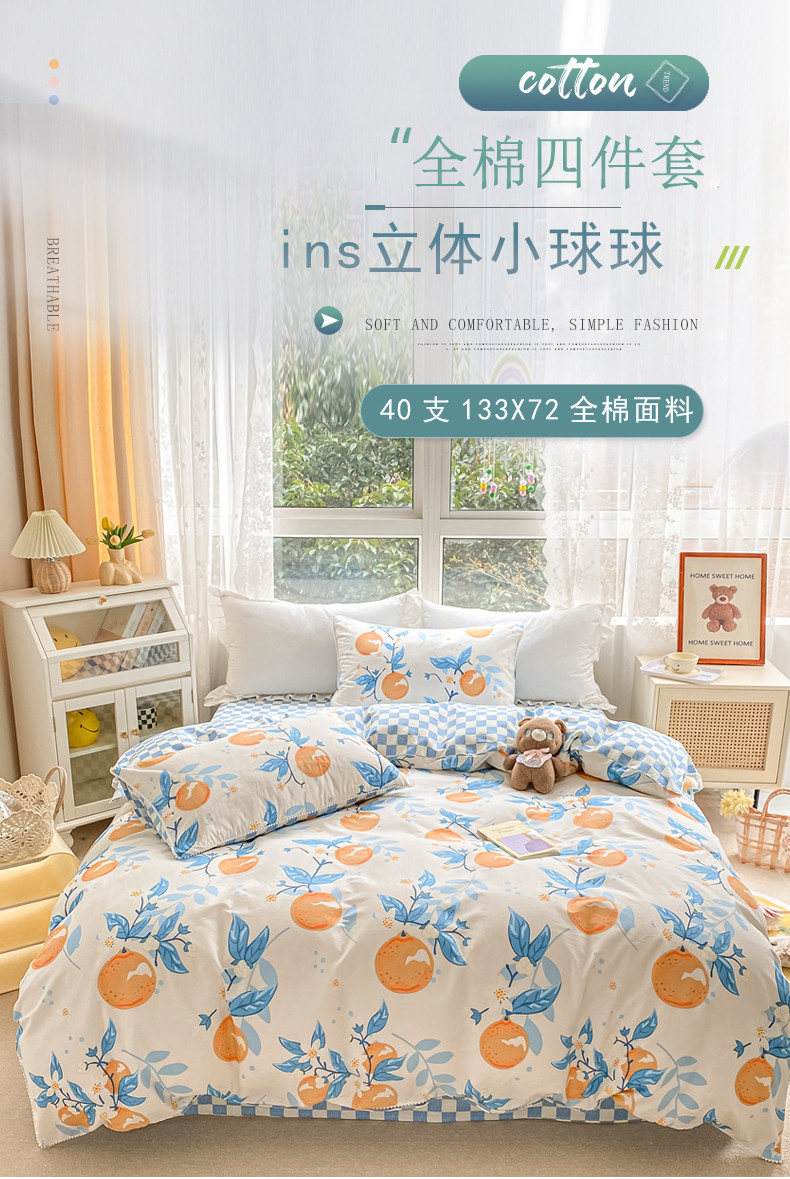 商品名称:捌月 2024新款全棉ins小球球款四件套 小蜜桔
