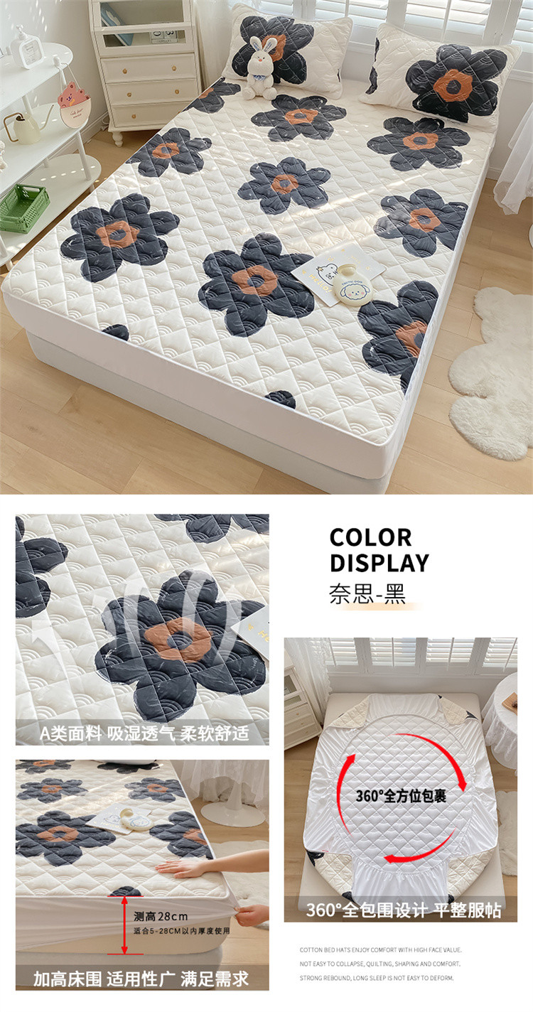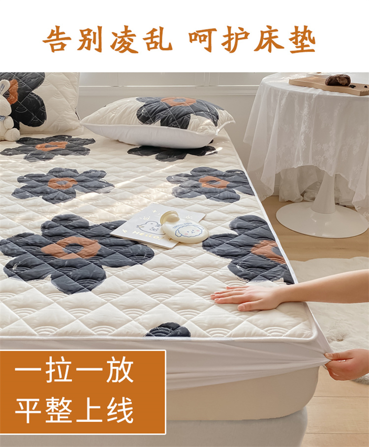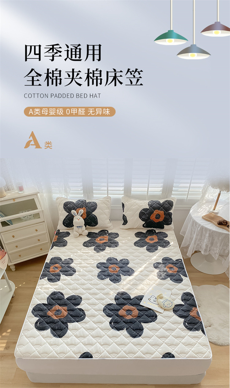 (总)鑫钰 2025新款A类纯棉夹棉床笠学生宿舍专用90x190-80x190-花漾山茶格,花漾山茶格-粉,花漾山茶格-蓝,花漾山茶格-灰