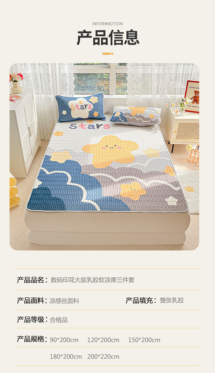 佰亿莱 2024新款大版乳胶软凉席三件套 星星之约