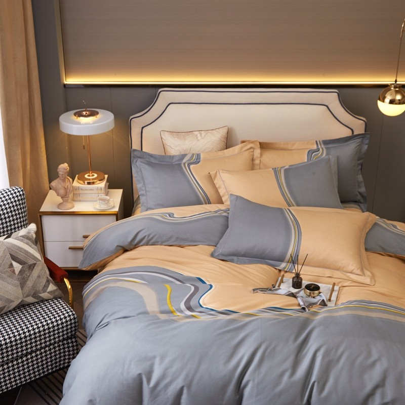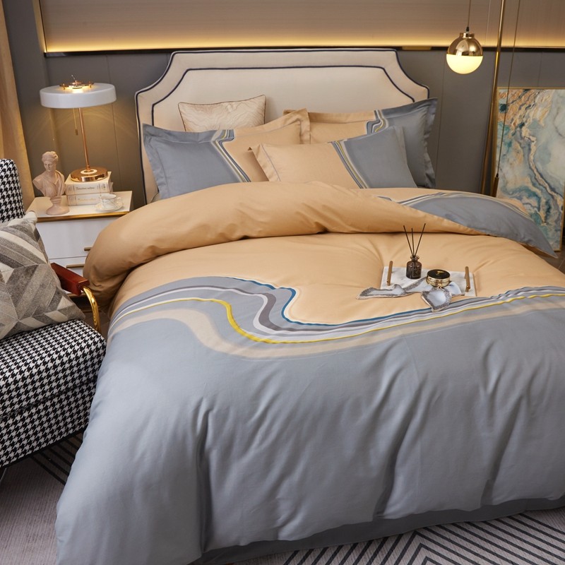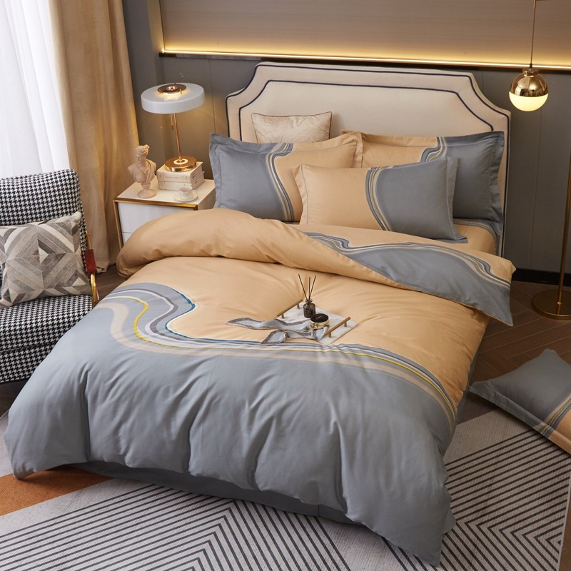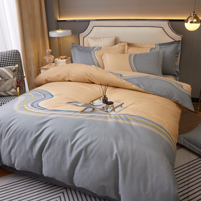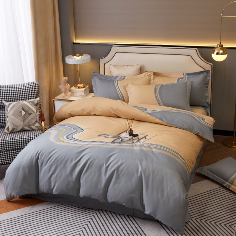 (总)惠居家 2023新款 120支长绒棉利亚款四件套,宝石蓝,橙色,豆沙,高级灰,卡宴蓝,温馨紫