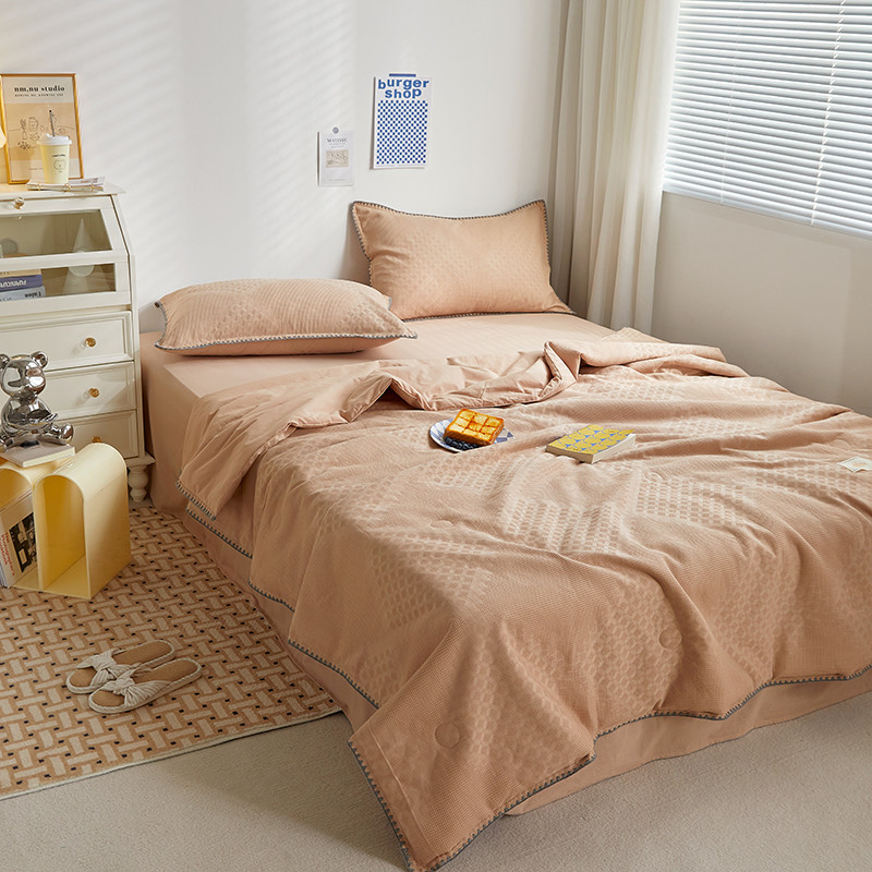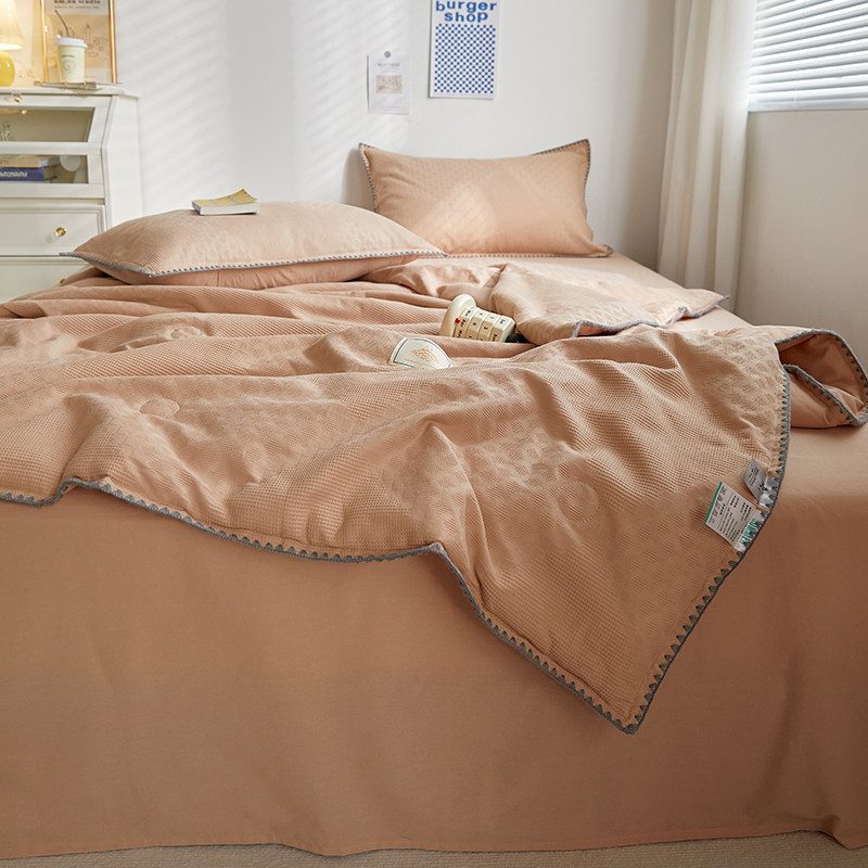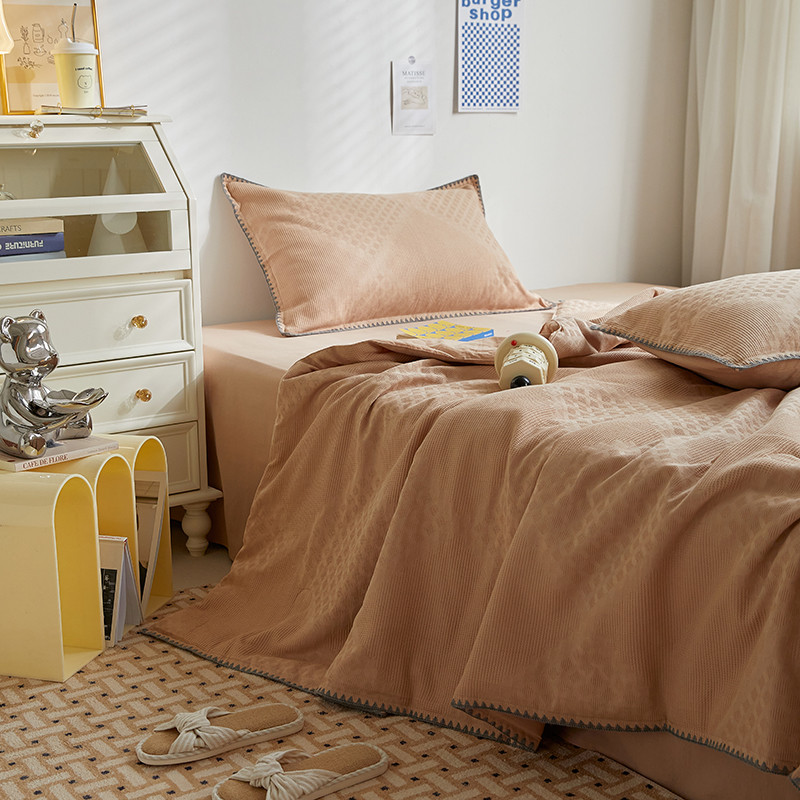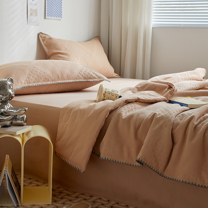 当前位置: 91家纺网 > 商品网购 > 床品套件 > 四件套 > 夏被四件套 > 金丝鸟 2023新款A类全棉华夫格水洗棉大豆夏被四件套 拉夫格-驼