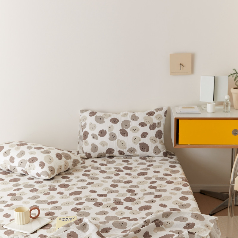 商品名称:8小时家纺 2022新款全棉双层纱单品床单 萌萌狗