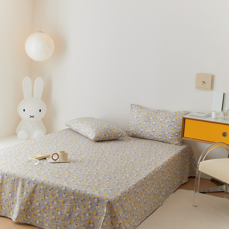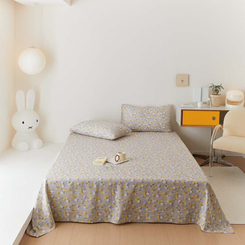 商品名称:8小时家纺 2022新款全棉双层纱单品床单 雅子灰