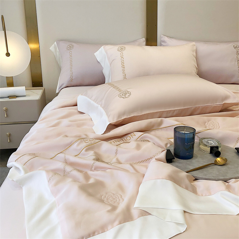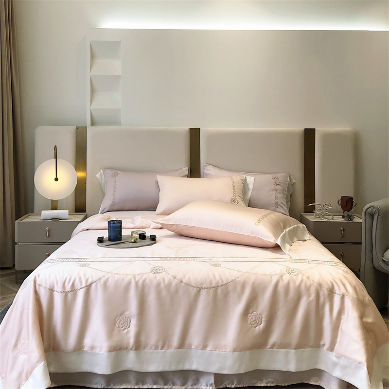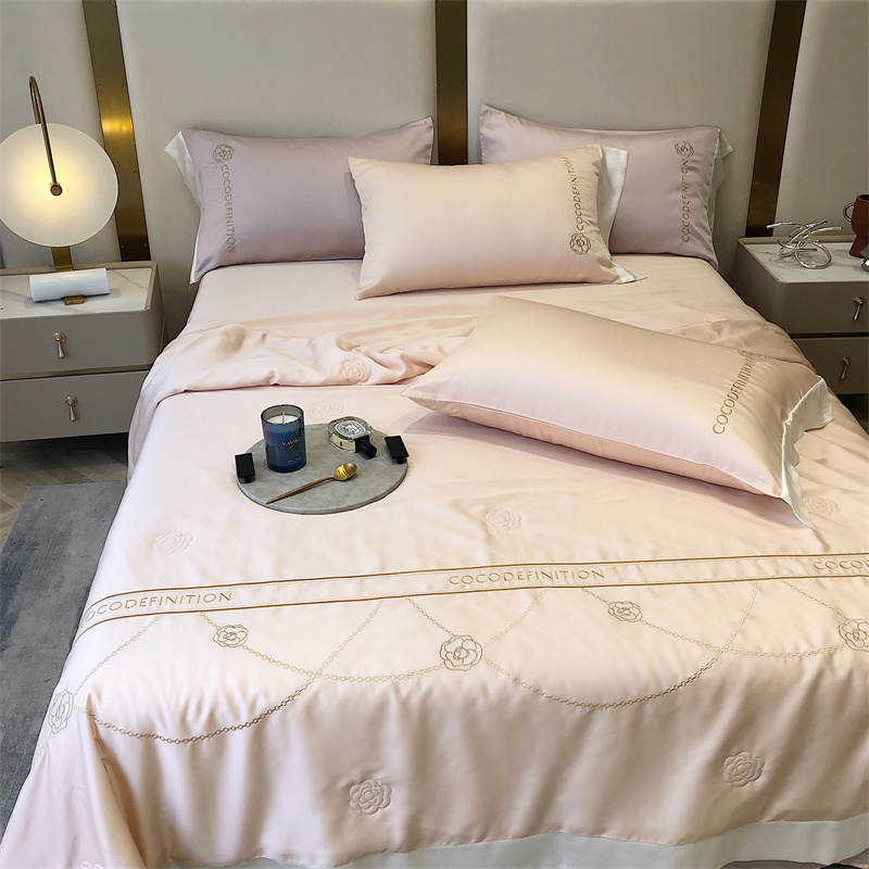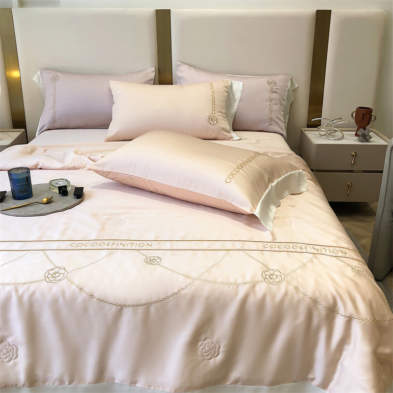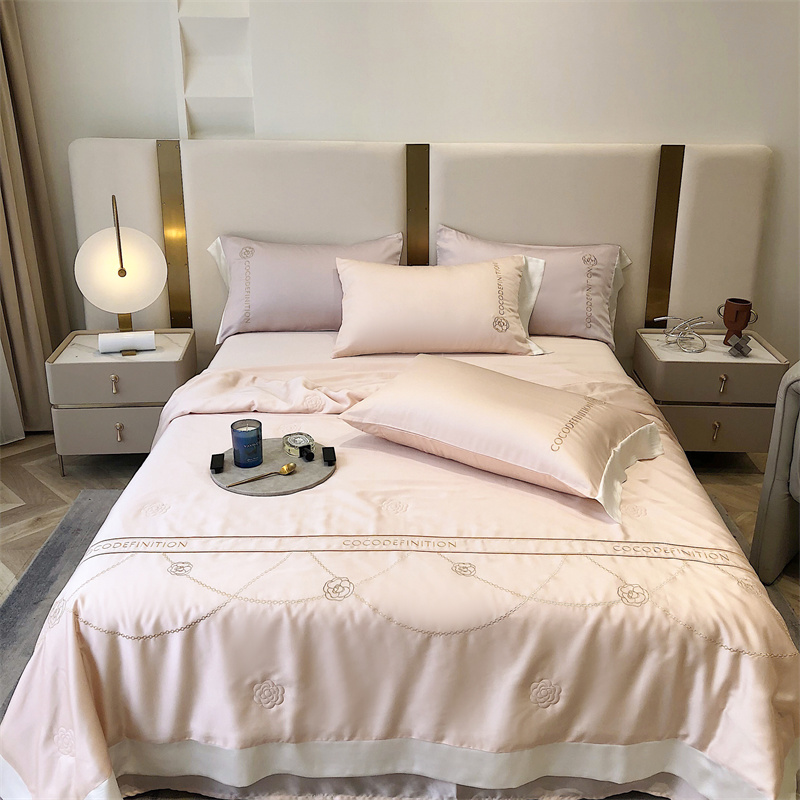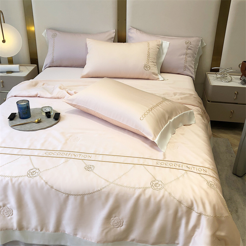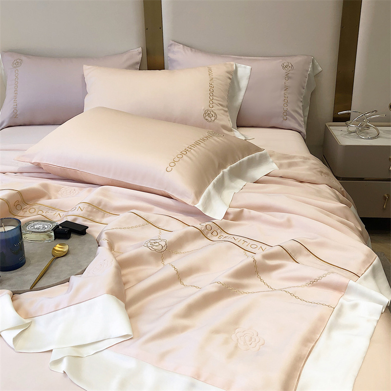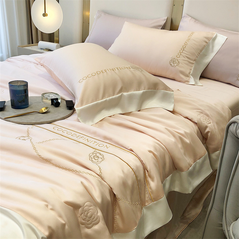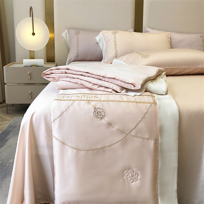 初拾 2022新款60支兰精天丝夏被四件套 邂逅-香槟粉