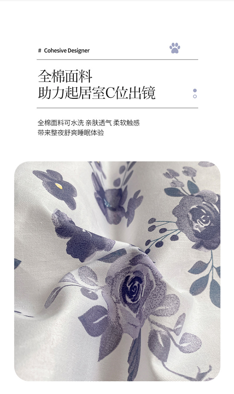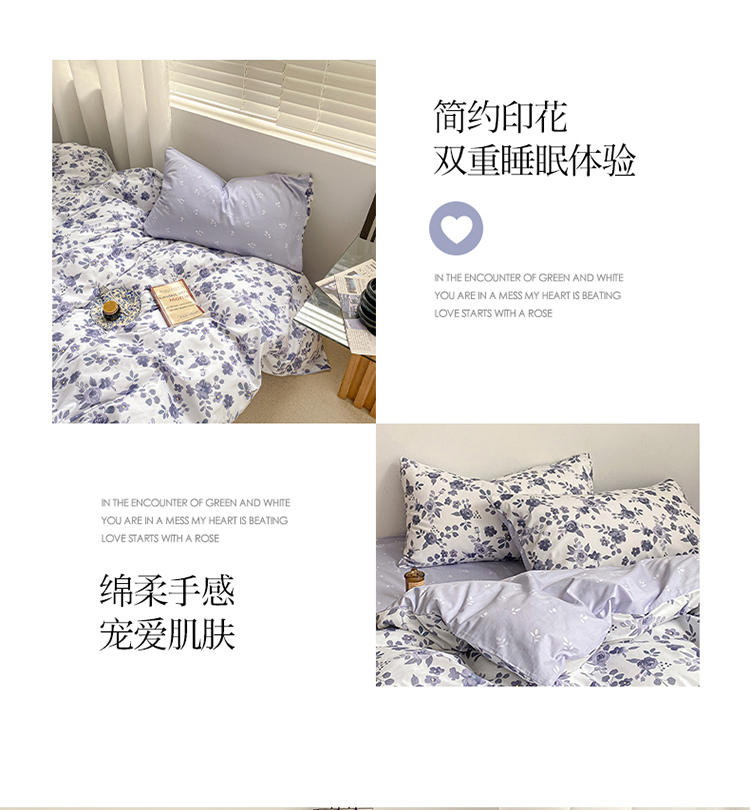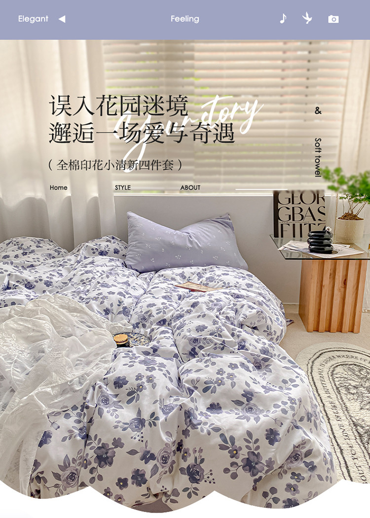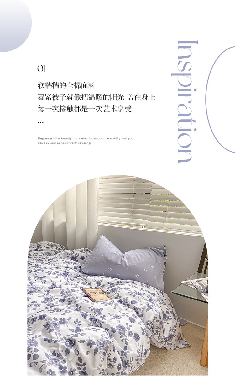 商品名称:雅居纺 2022新款全棉13070印花小清新四件套 水墨花