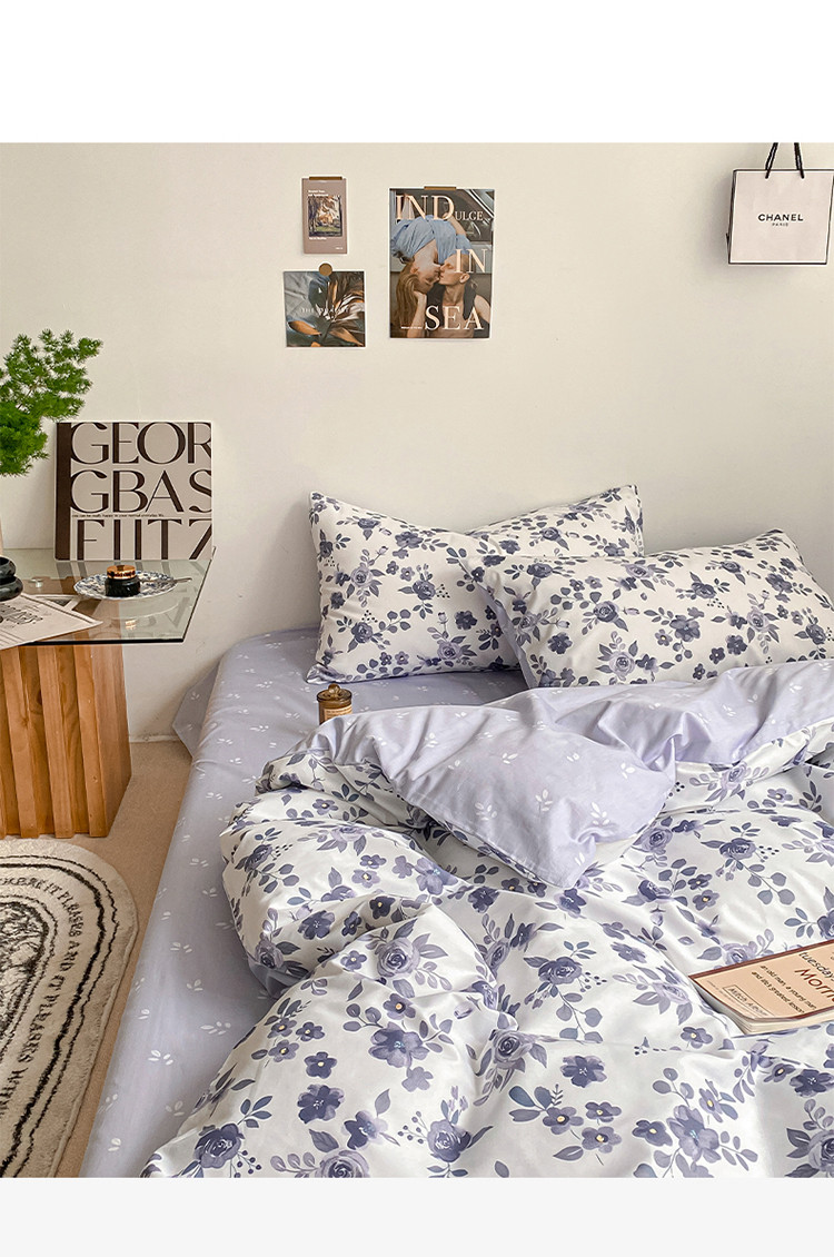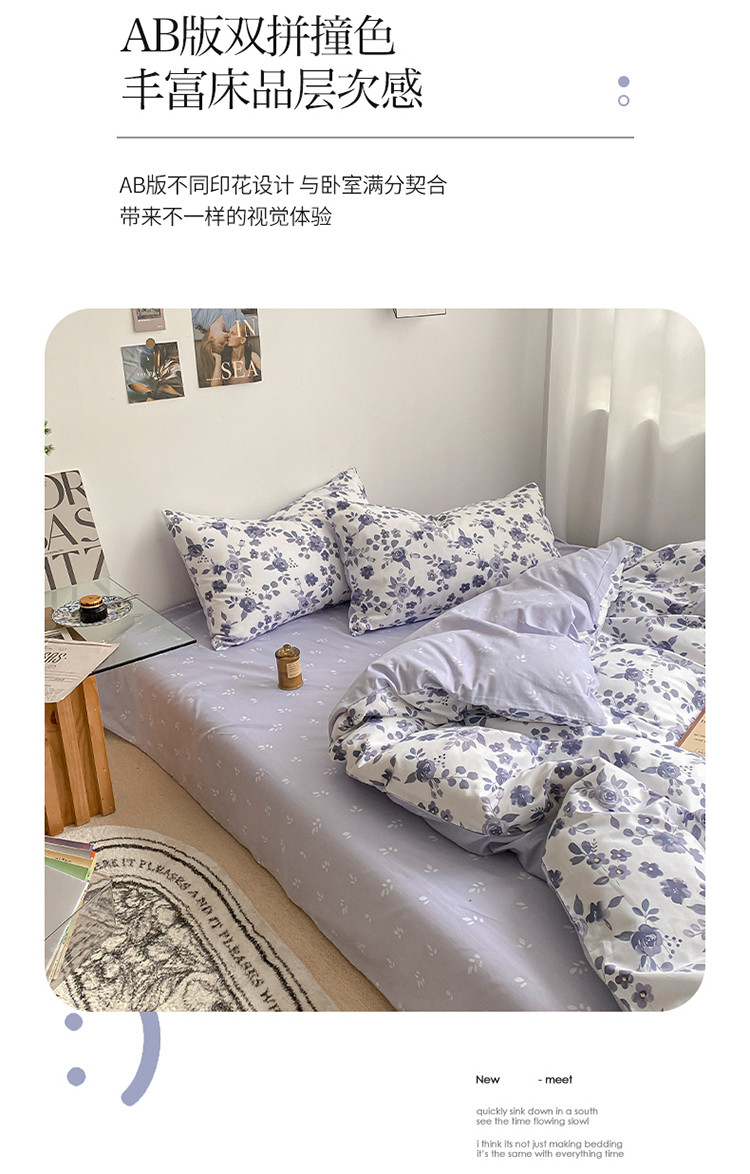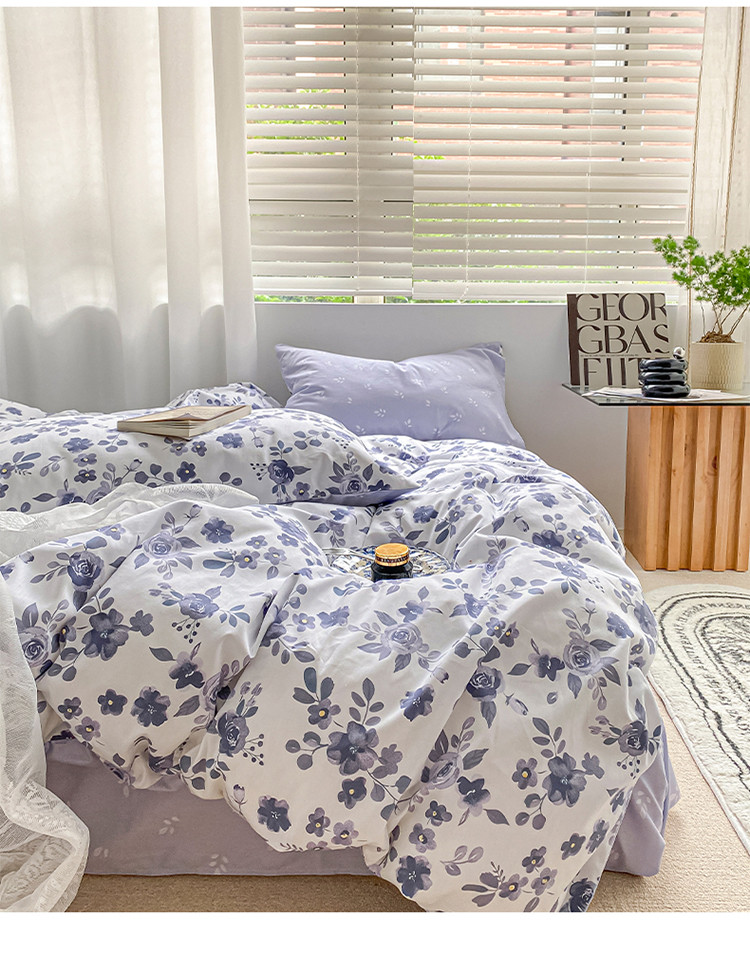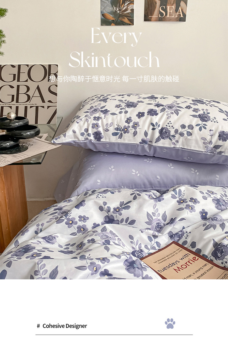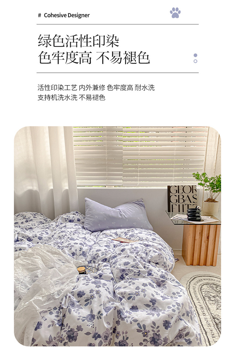 雅居纺 2022新款全棉13070印花小清新四件套 水墨花