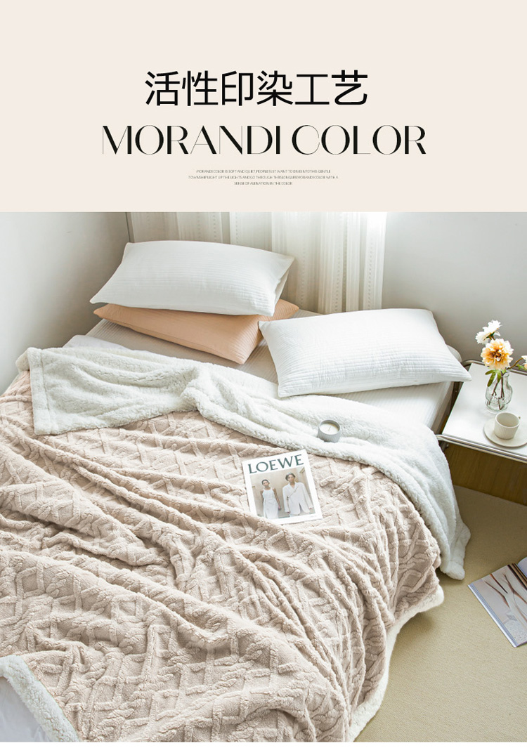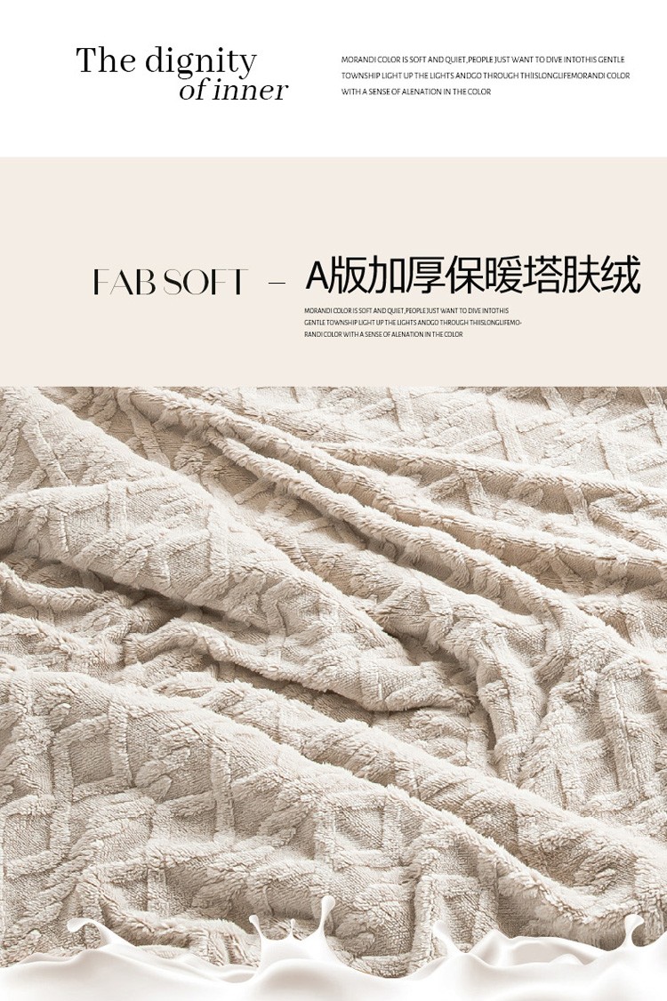 (总)穆琪2025新款轻奢盖毯高克重多层提花绵柔绒保暖毛毯绵密亲肤沙发毯休闲小毯子,果绿,浅咖,秋波蓝,水晶紫,象牙白,陨石灰