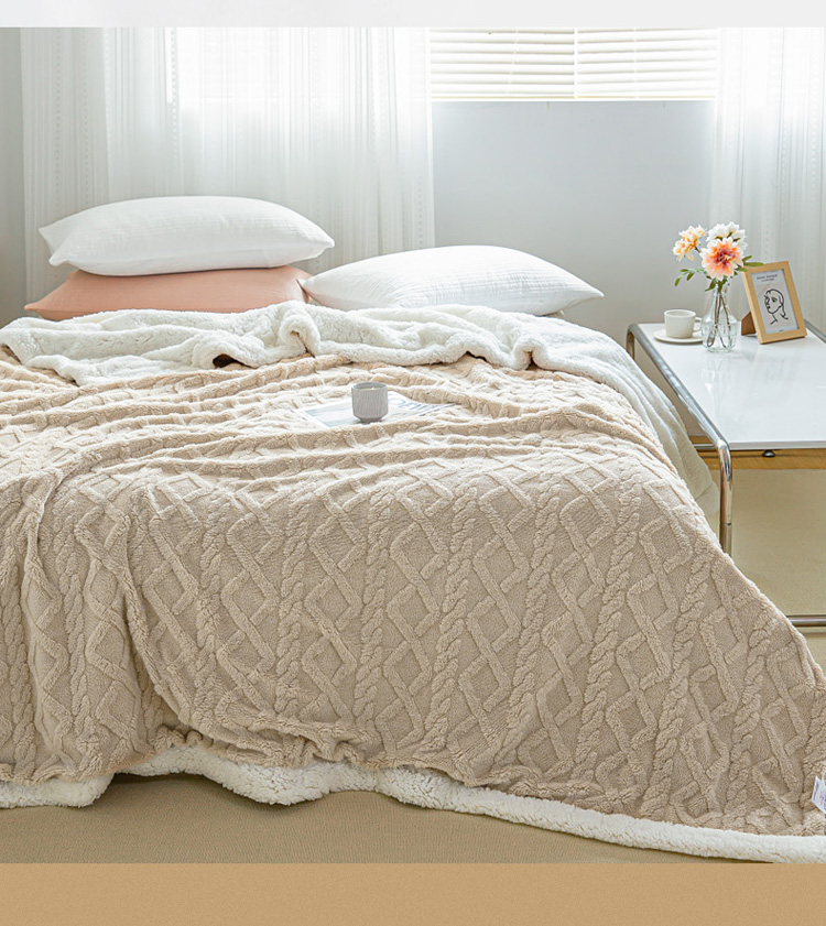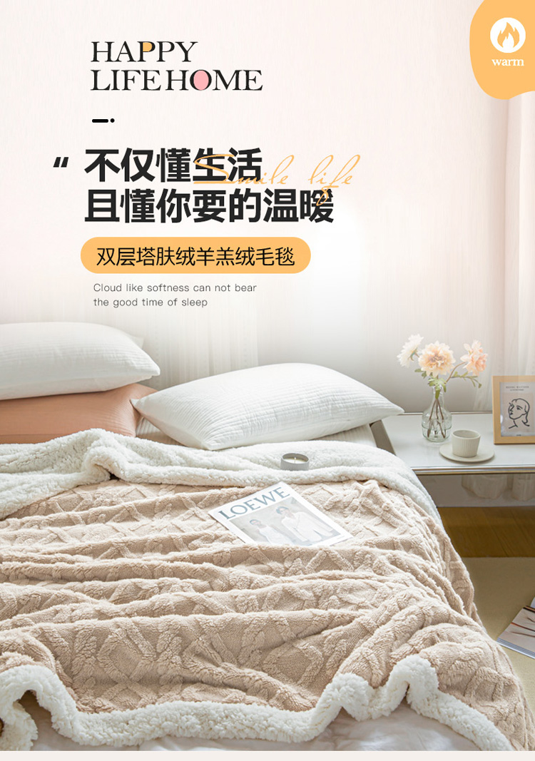 羋多 2023年新款AB版提花塔芙绒羊羔绒毯子舒棉绒毛毯 卡其-白