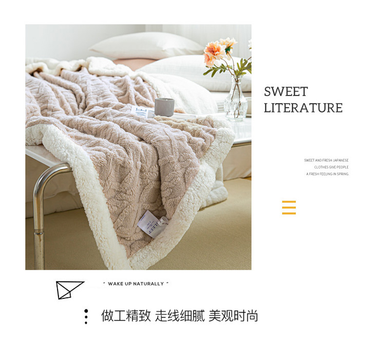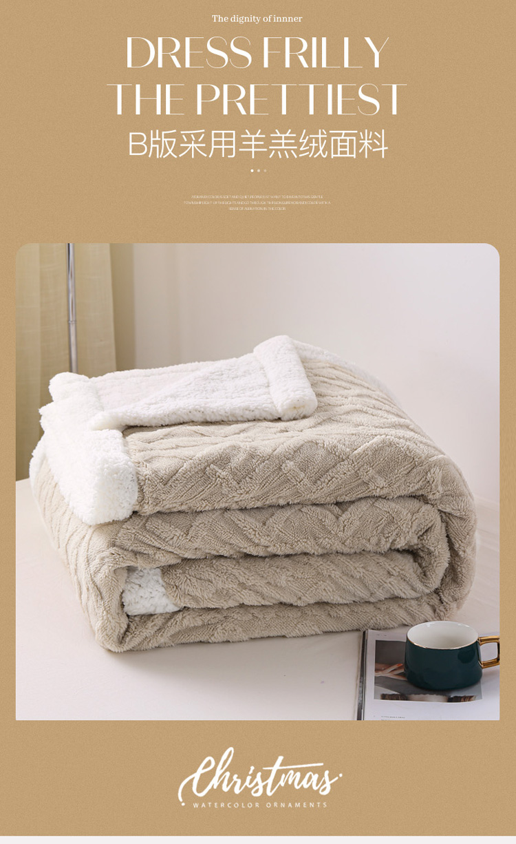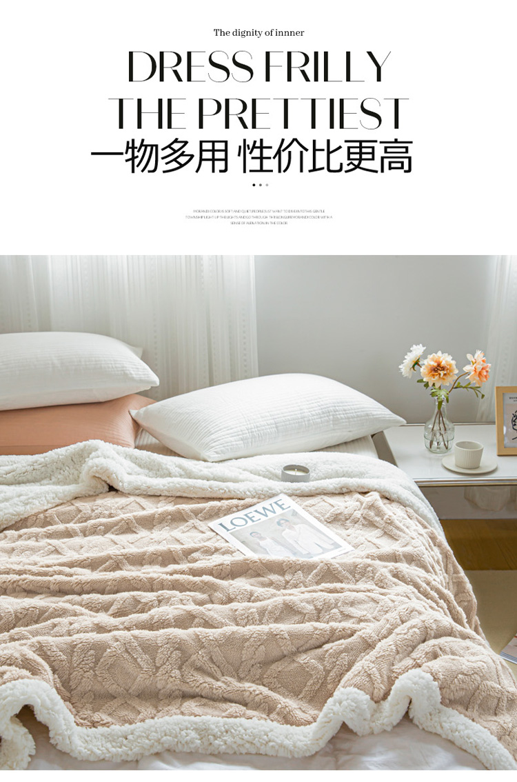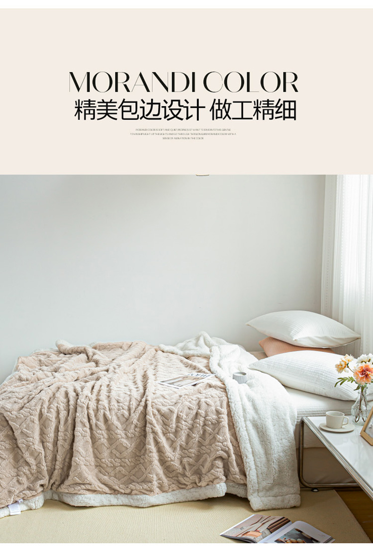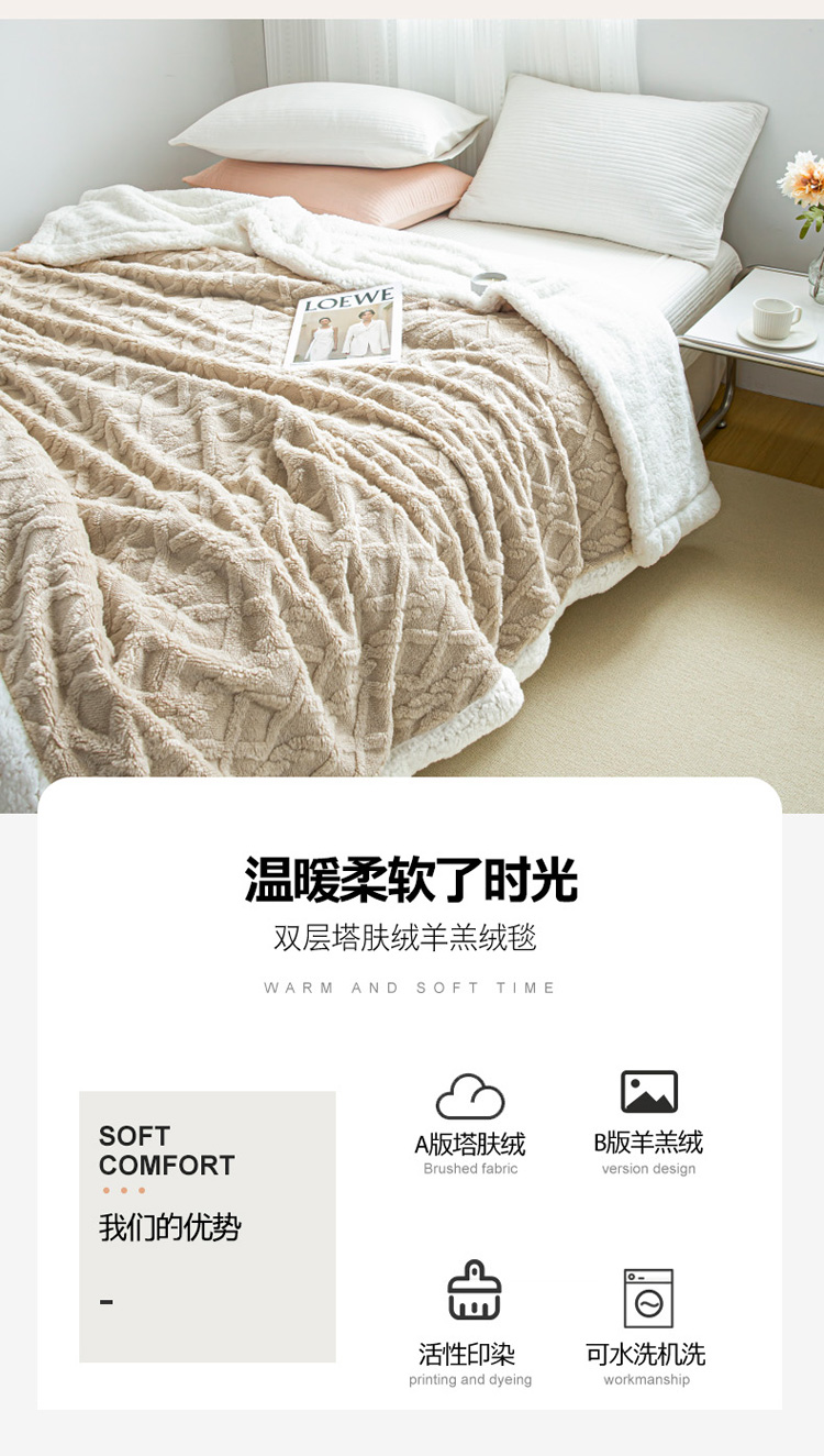 商品名称:羋多 2023年新款AB版提花塔芙绒羊羔绒毯子舒棉绒毛毯 卡其-白