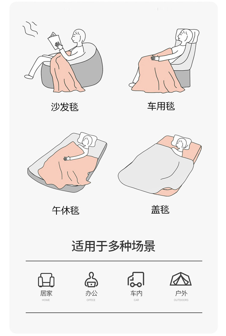 (总)穆琪 2025新款高克重竹节绒毛毯兔毛绒办公家用多功能毯子,薄暮灰,奶茶棕,青竹绿,晴山蓝,珊瑚粉,云朵白