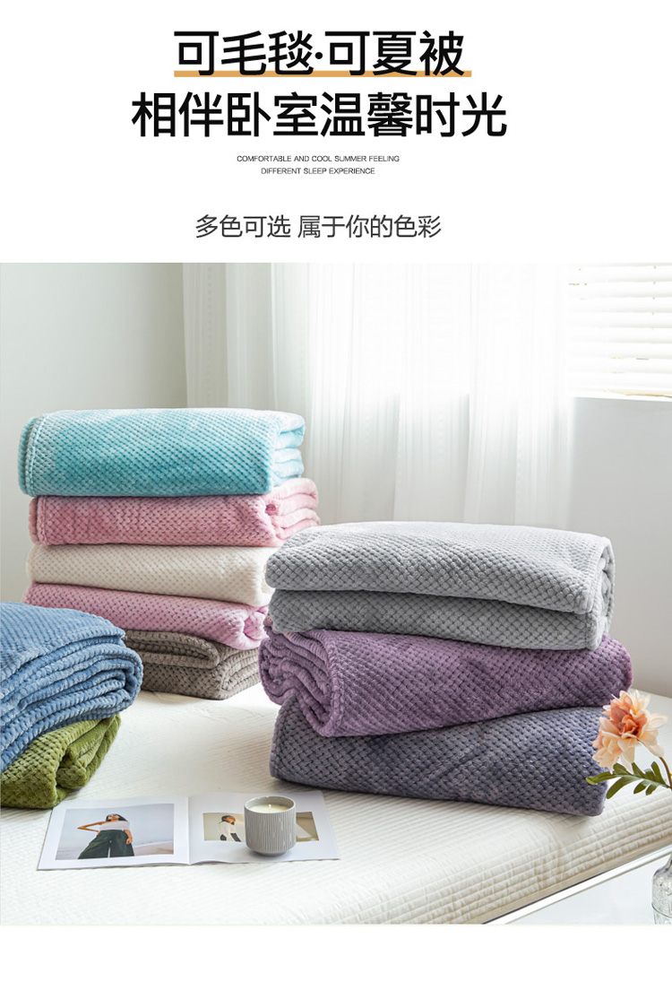 (总)穆琪2025新款轻奢盖毯高克重多层提花绵柔绒保暖毛毯绵密亲肤沙发毯休闲小毯子,果绿,浅咖,秋波蓝,水晶紫,象牙白,陨石灰