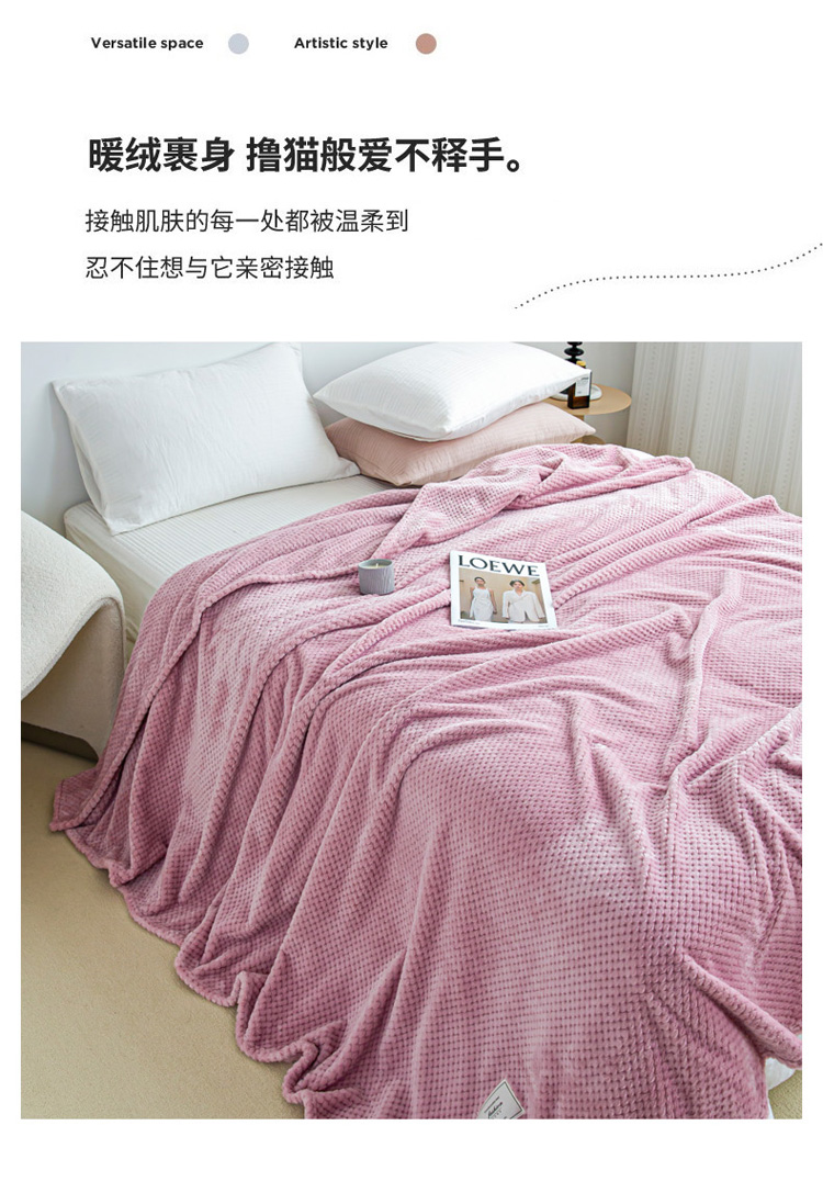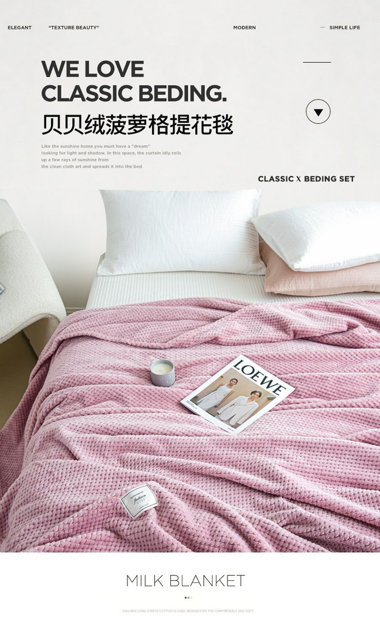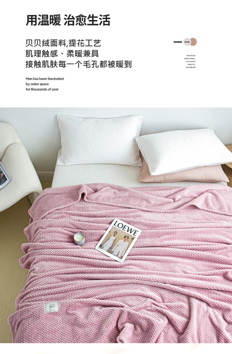 商品名称:羋多 2023年新款菠萝格提花毯子法莱绒云貂绒贴布毛毯 豆沙