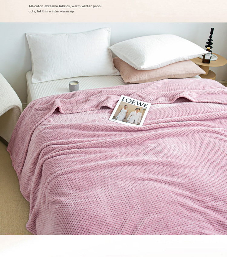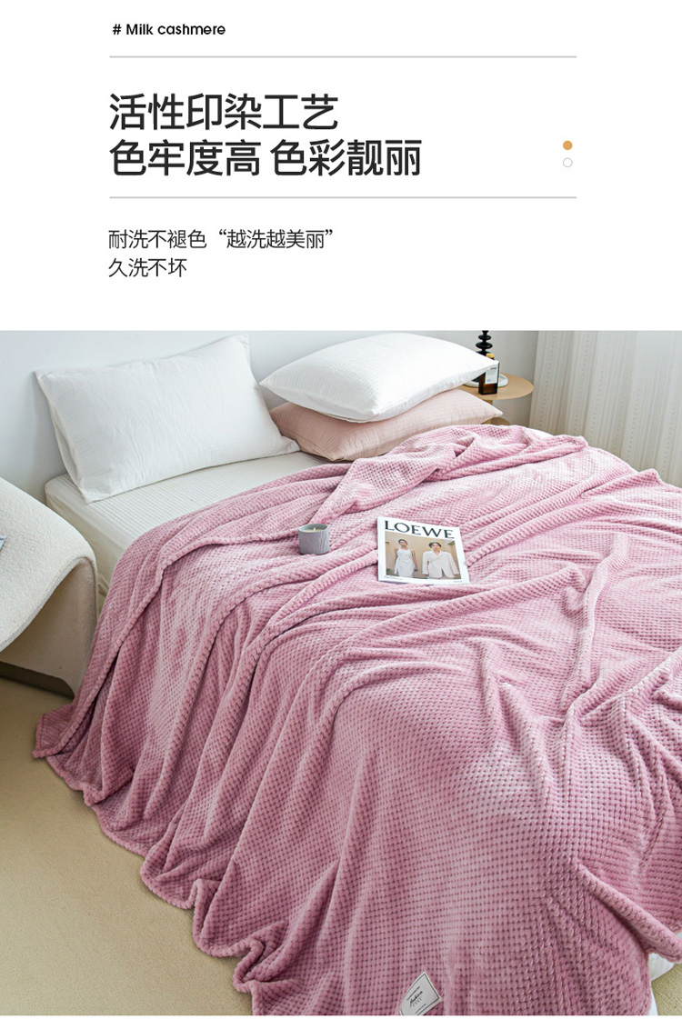 羋多 2023年新款菠萝格提花毯子法莱绒云貂绒贴布毛毯 豆沙