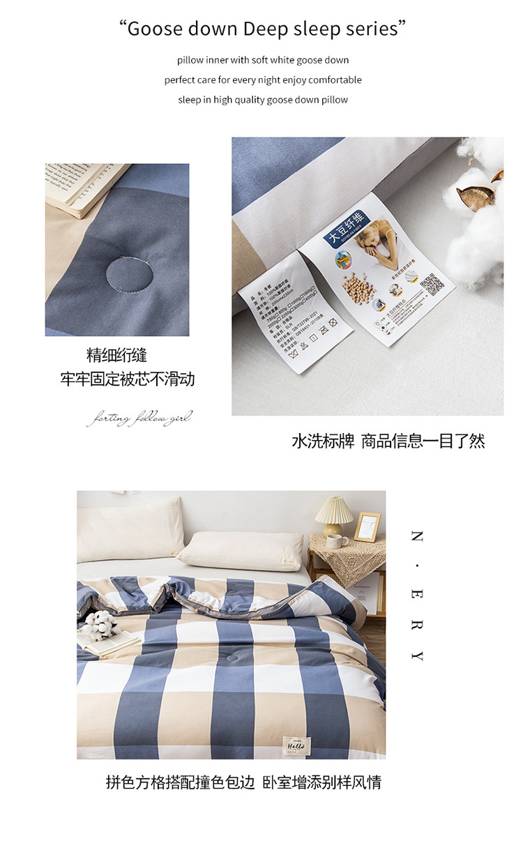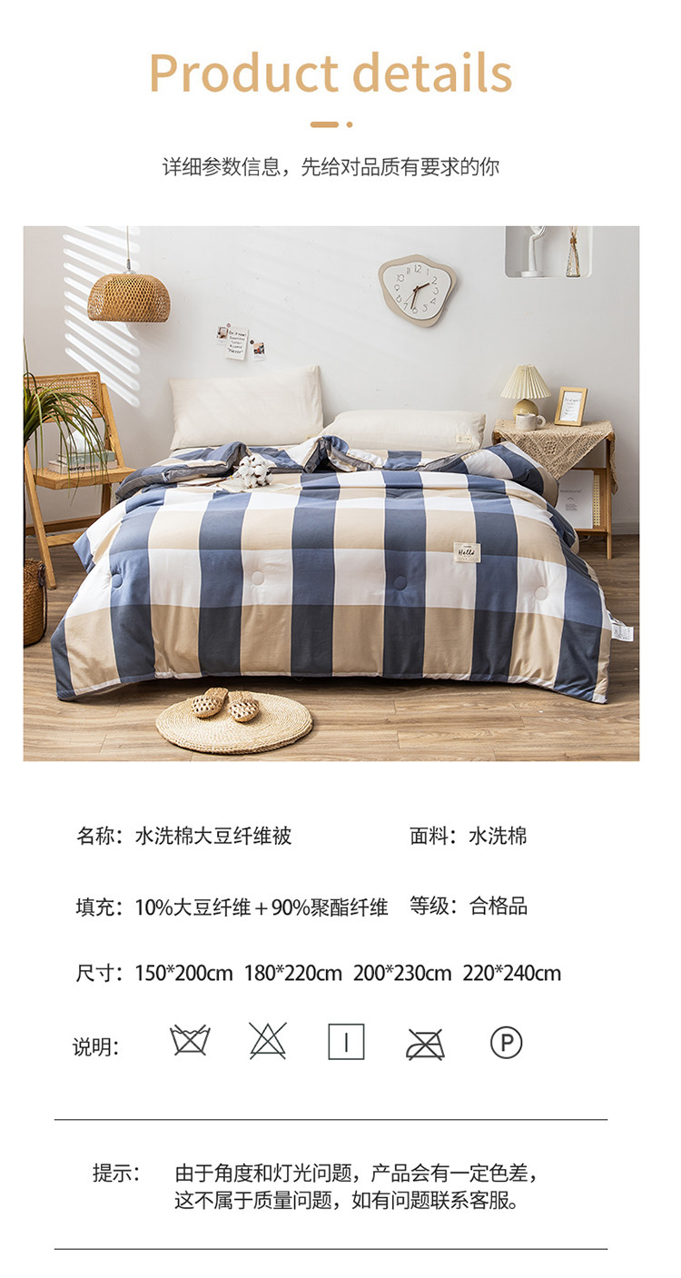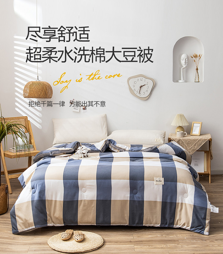 • 91家纺网 家纺一手货源 找家纺 森林人 2022新款A类水洗棉立体大豆被-印花 蓝大格