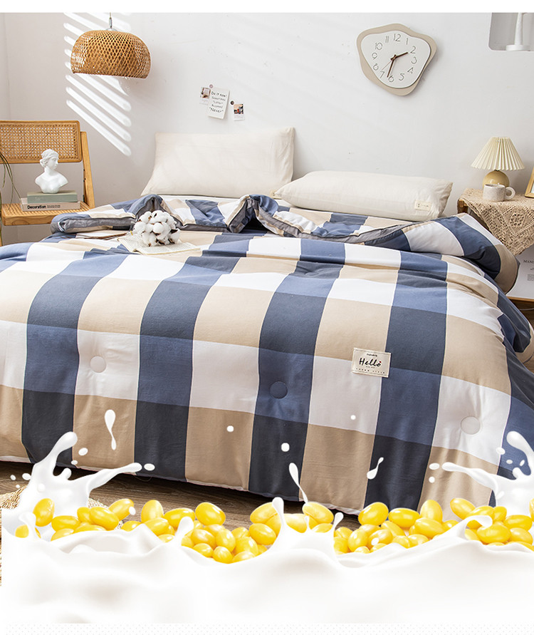 森林人 2022新款A类水洗棉立体大豆被-印花 蓝大格