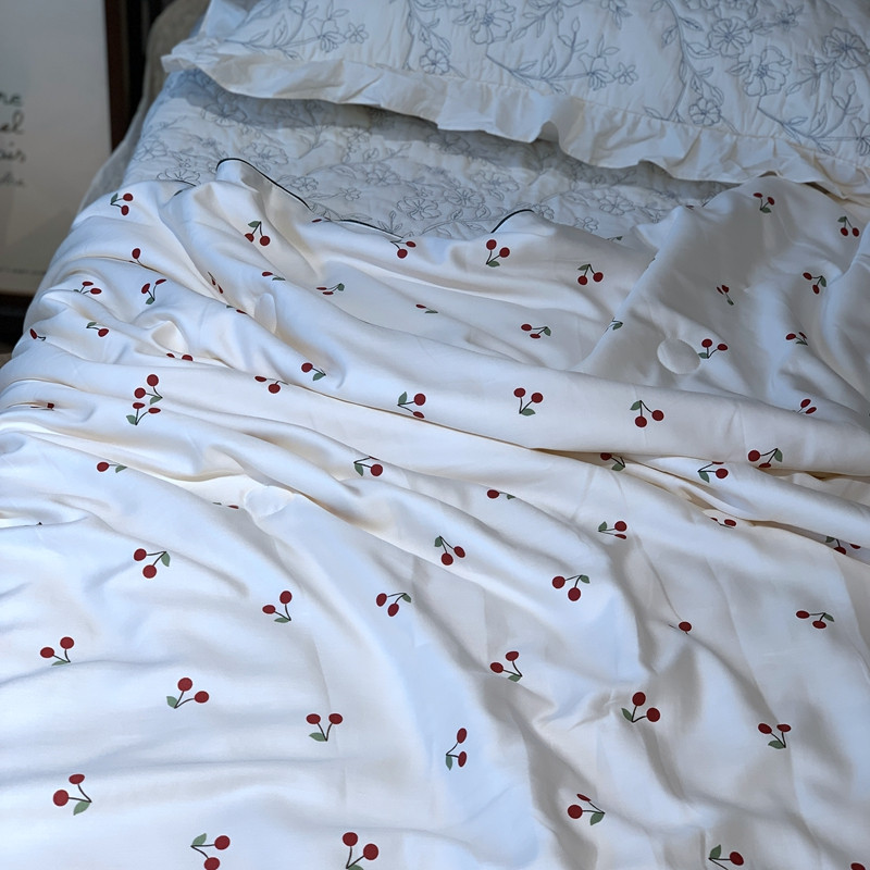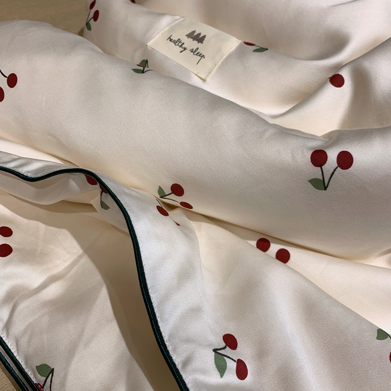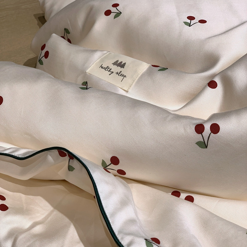(总)汇庭 2025新款秋冬胖胖樱桃春秋被+樱桃菲菲床盖三件套,组合图下单仅供展示不可下单,粉色,绿色,米色