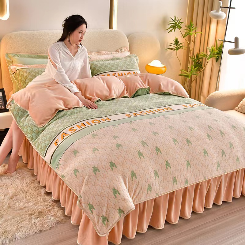 (总)羽梦家纺 2024秋冬新品260克加厚全工艺消光保暖花边刺绣牛奶绒四件套-遇见春屿系列,遇见春屿-豆沙,遇见春屿-粉,遇见春屿-湖蓝,遇见春屿-灰,遇见春屿-蓝,遇见春屿-绿
