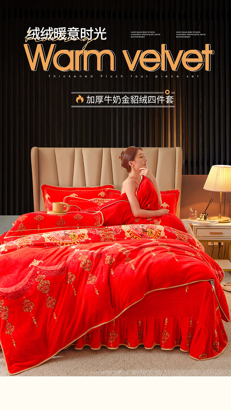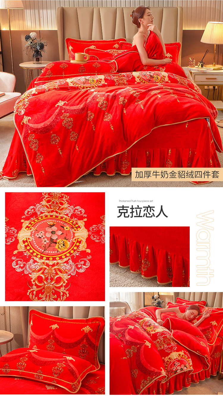 商品名称:贝诗梦 2022新款加厚牛奶金貂绒四件套 克拉恋人