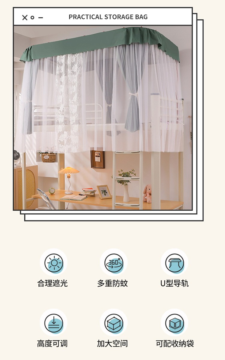 商品名称:飞轮海U型双轨道床帘学生蚊帐上下铺通用XD-1芥末绿送风扇杆