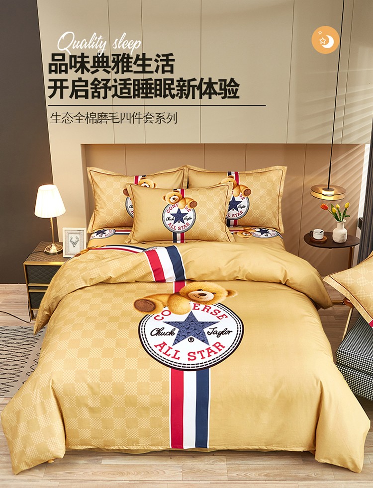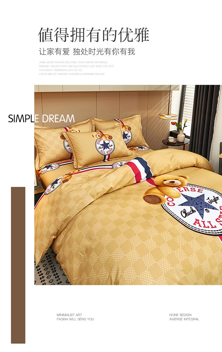 商品名称:雲归梦 2022年新款加厚全棉大版四件套第二批-格条卡通 趣萌熊-黄
