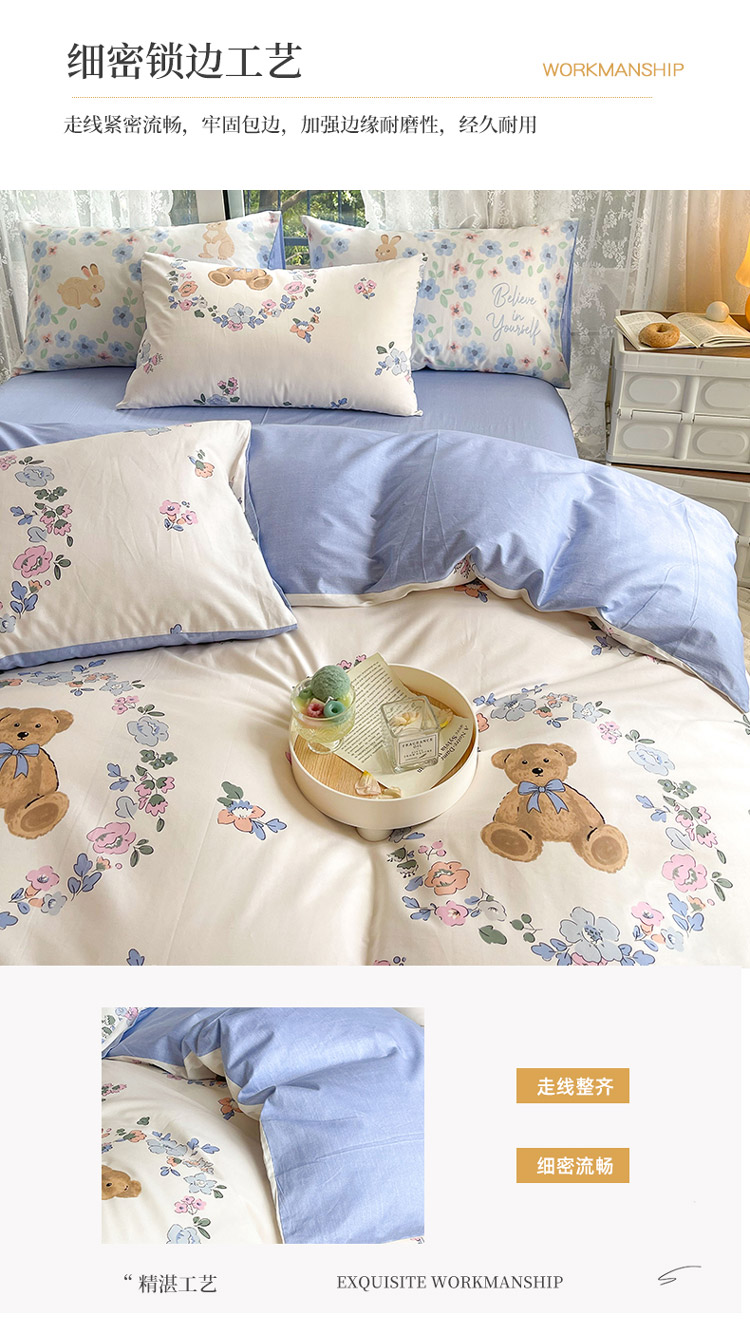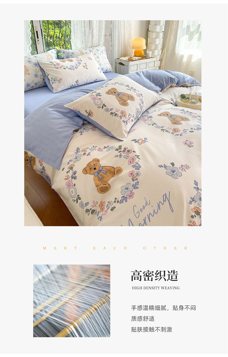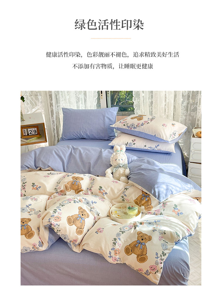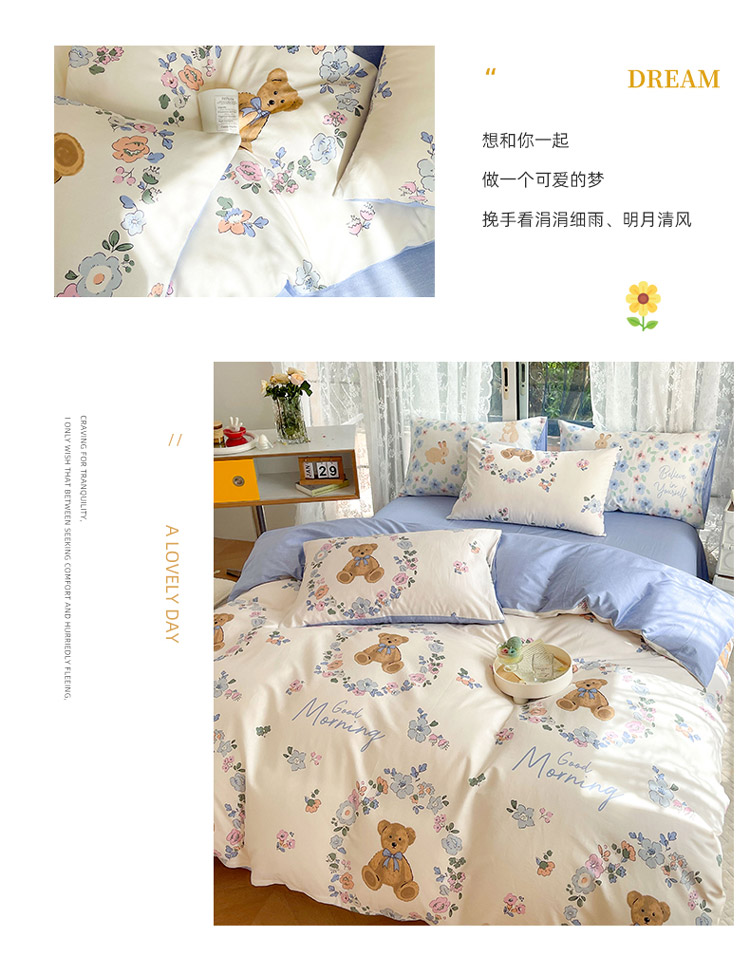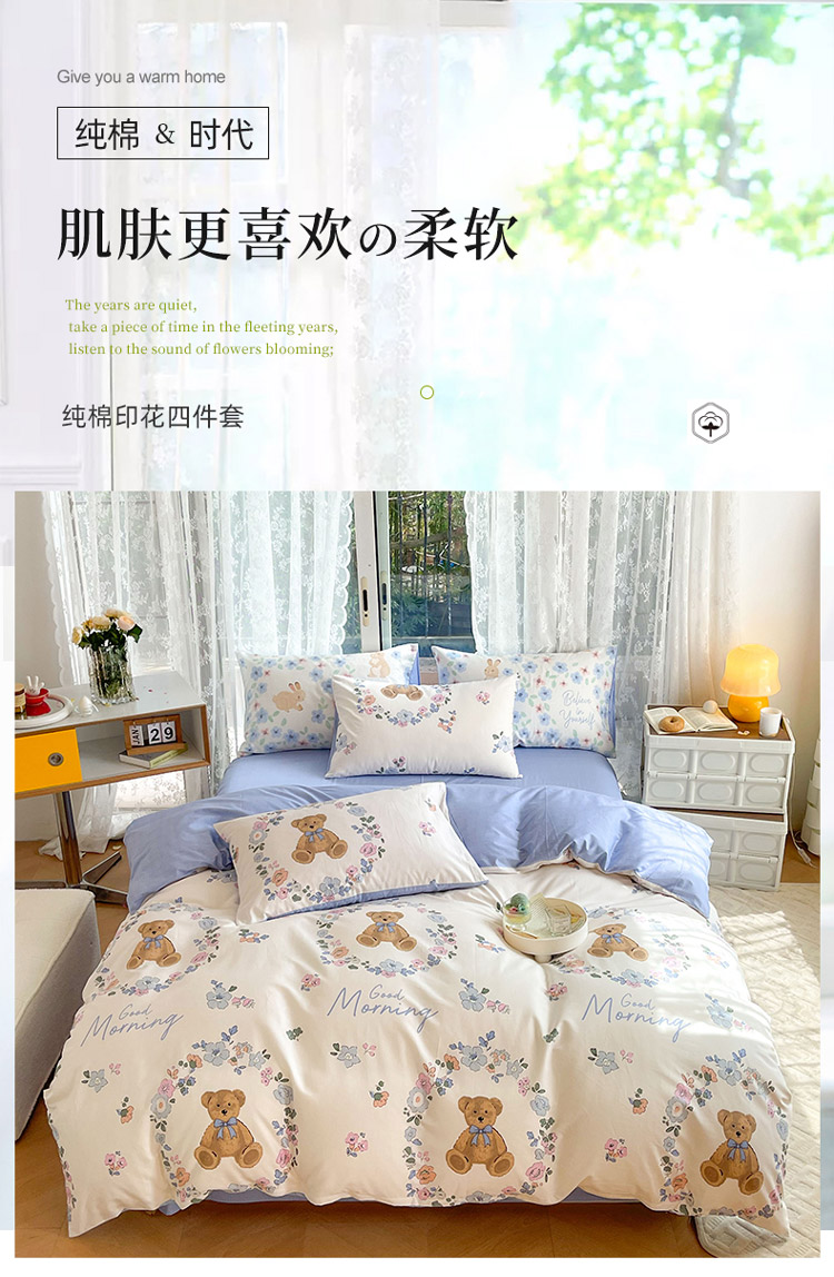 当前位置: 91家纺网 > 商品网购 > 床品套件 > 四件套 > 全棉普通四件套 > 感遇2022新款纯棉印花四件套 花环小熊