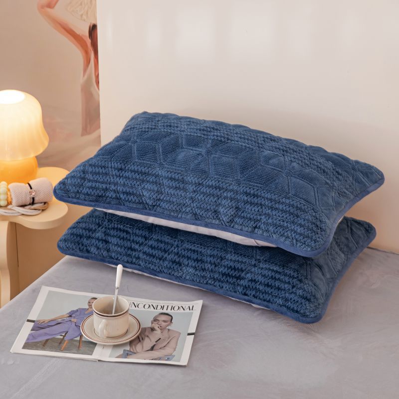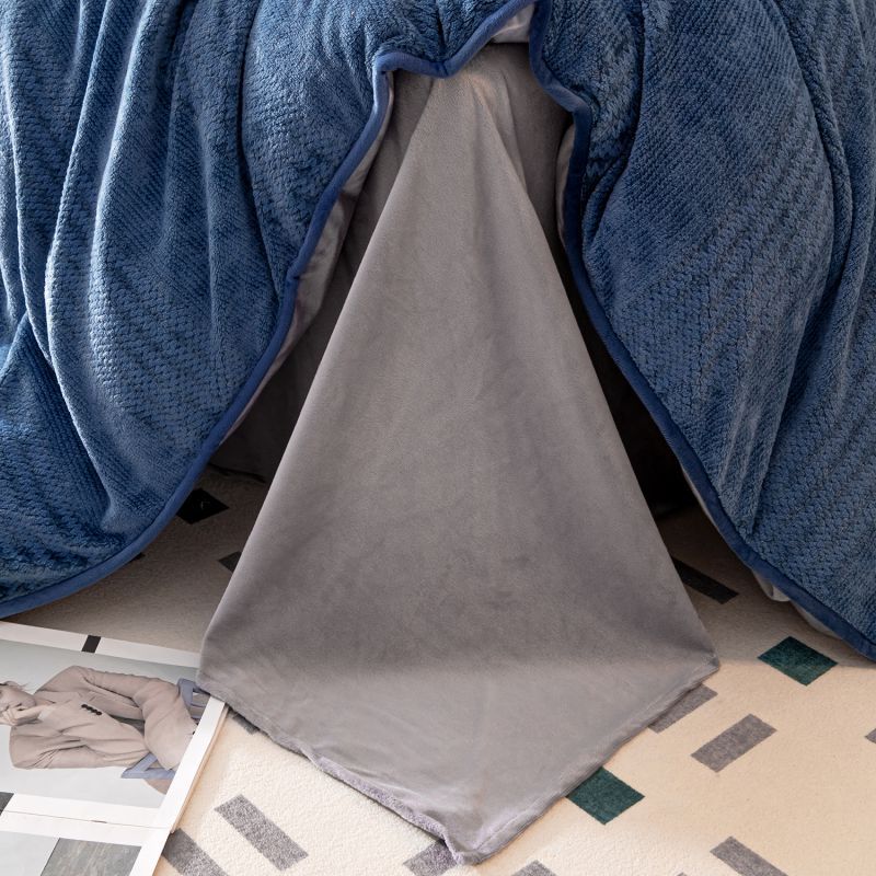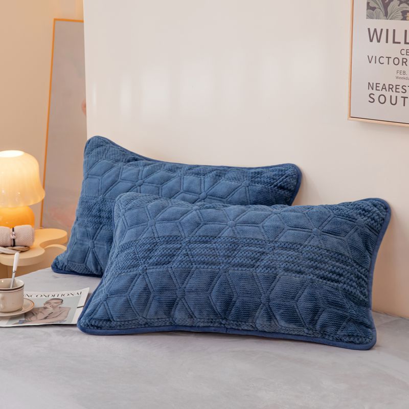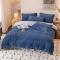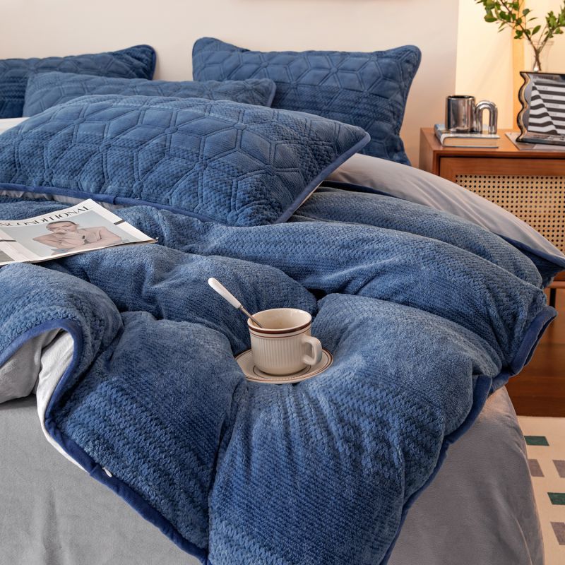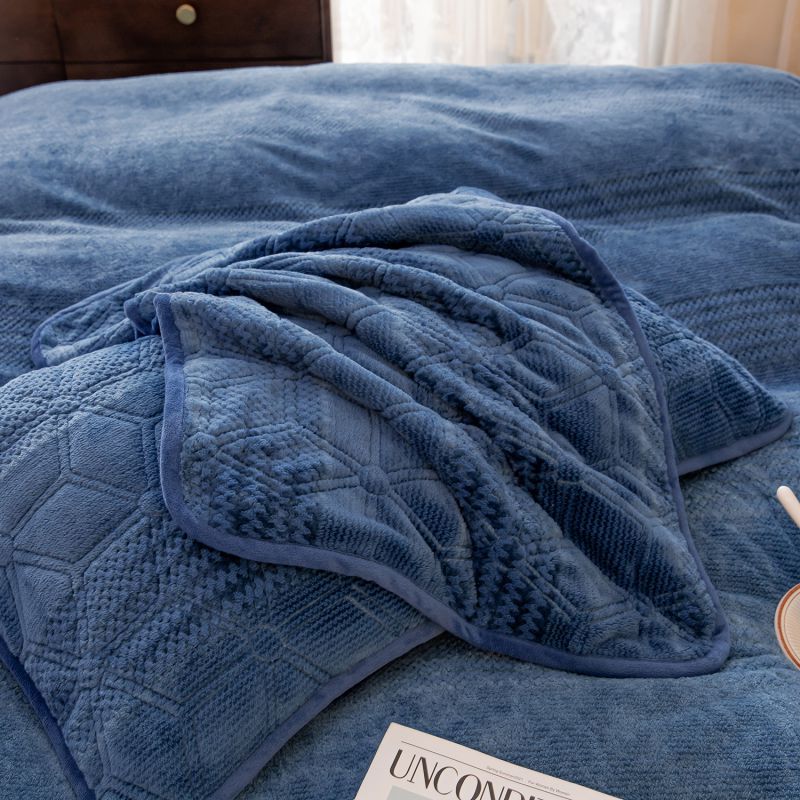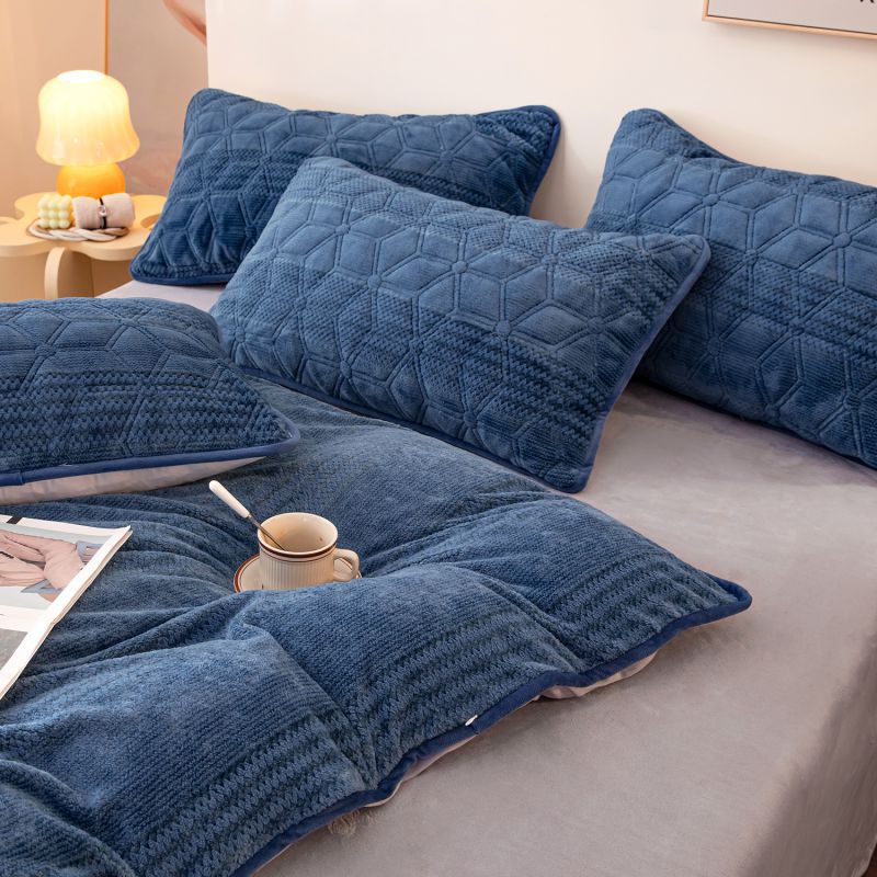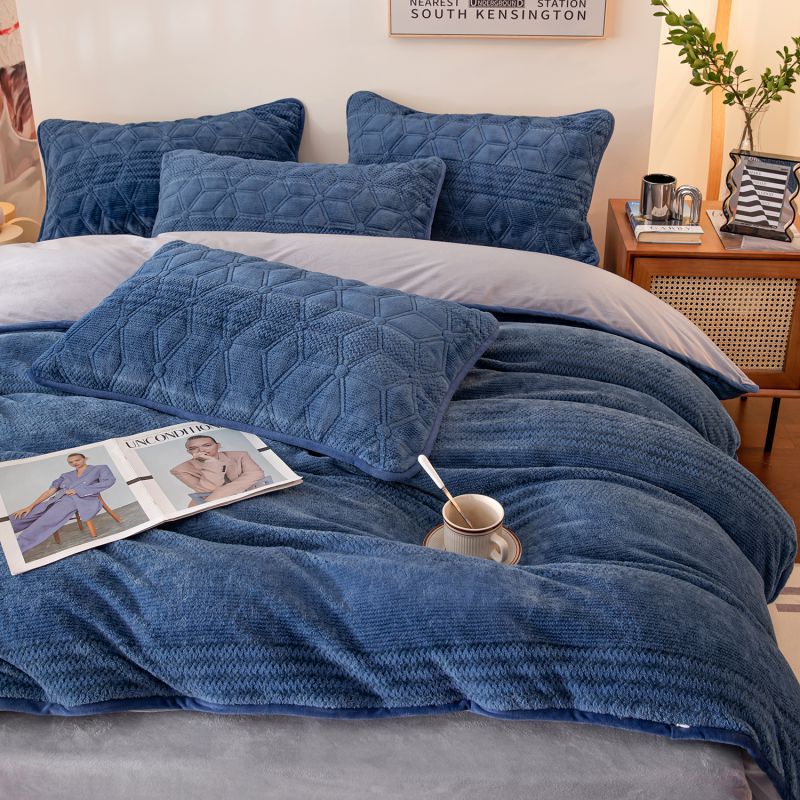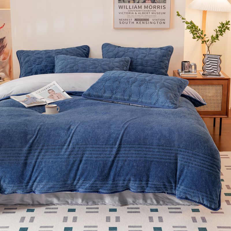 凡客 2022新款牛奶绒雕花绒夹棉床笠四件套 宝蓝