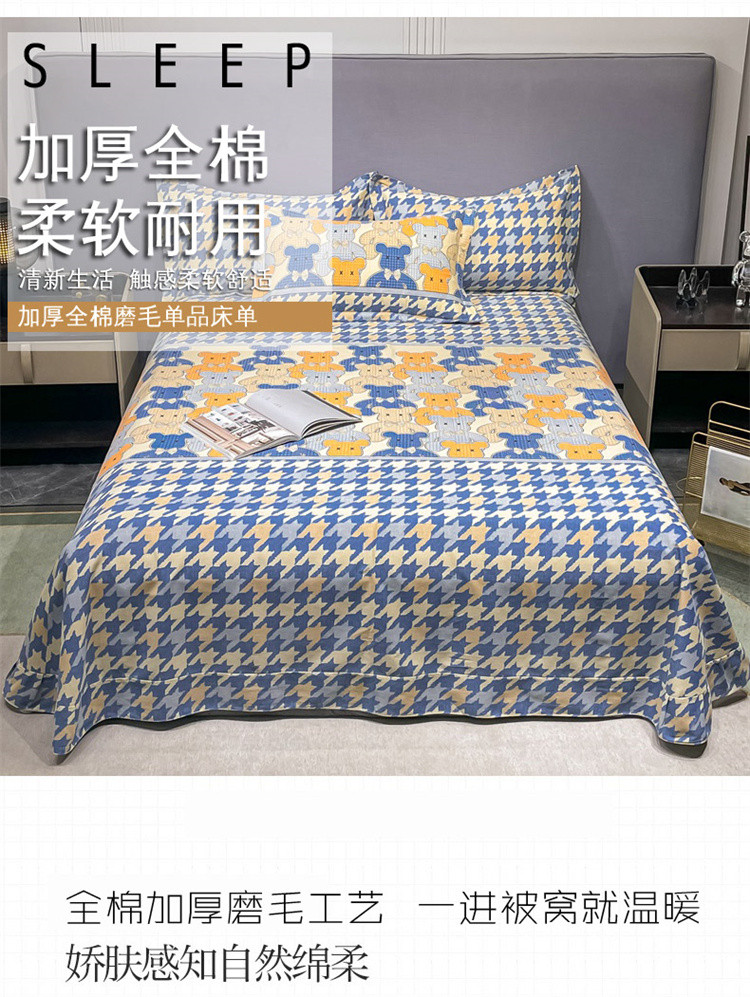 总-2023新款加厚活性全棉磨毛床单单件/单床单单品被单斜纹