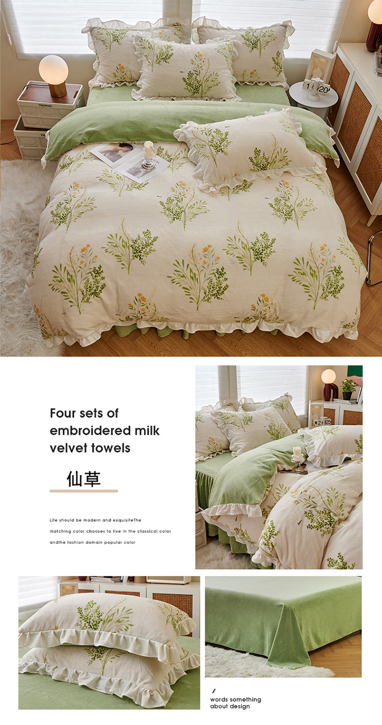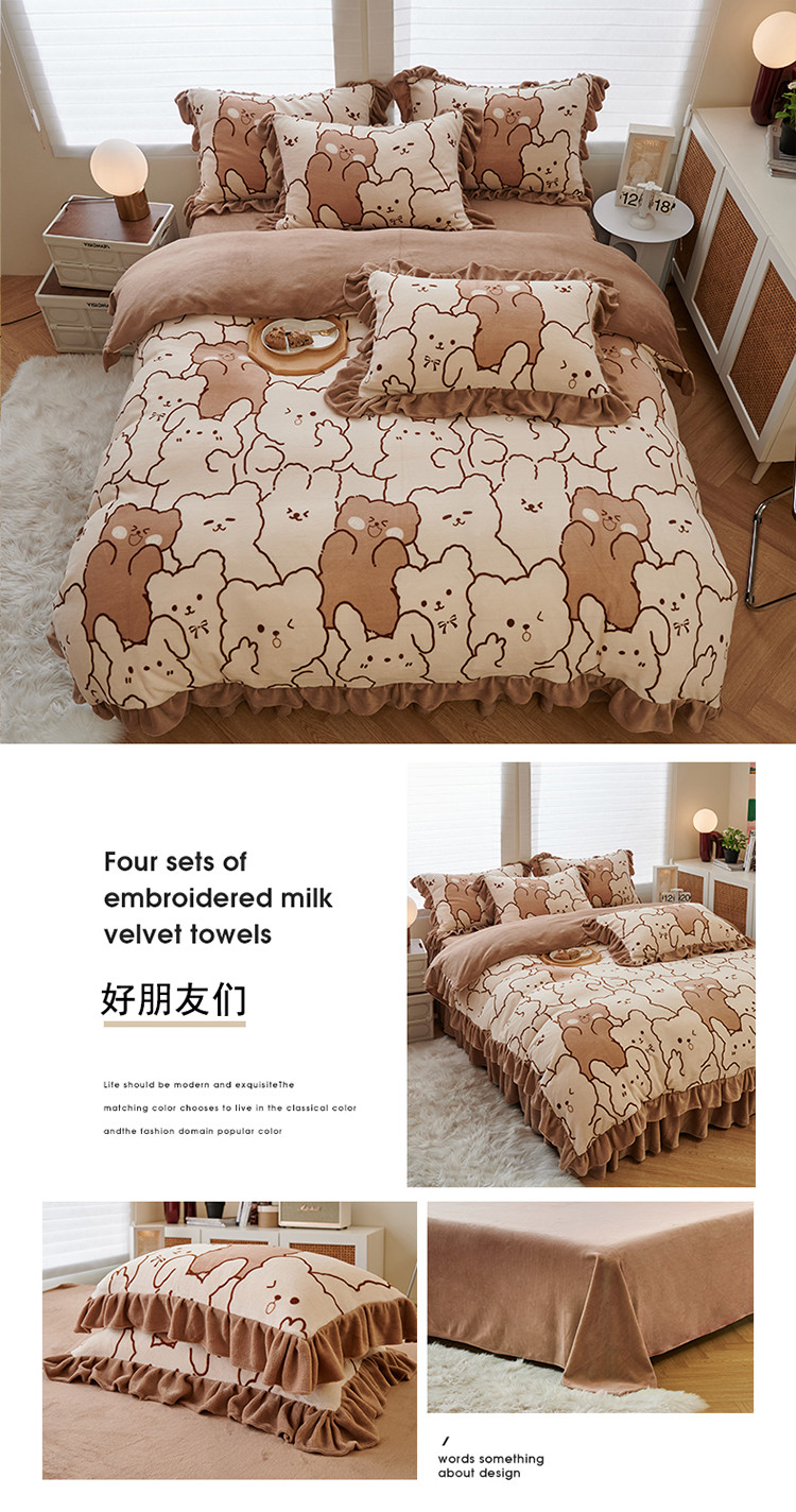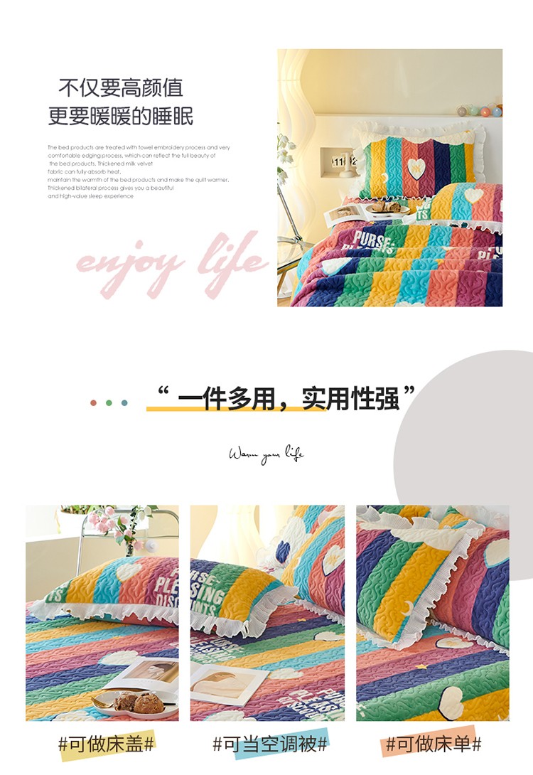 (总)2023新款高克重牛奶绒夹棉床盖三件套