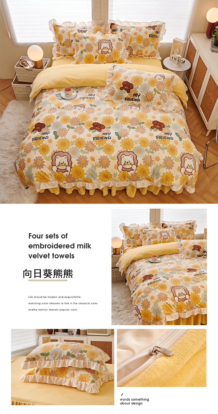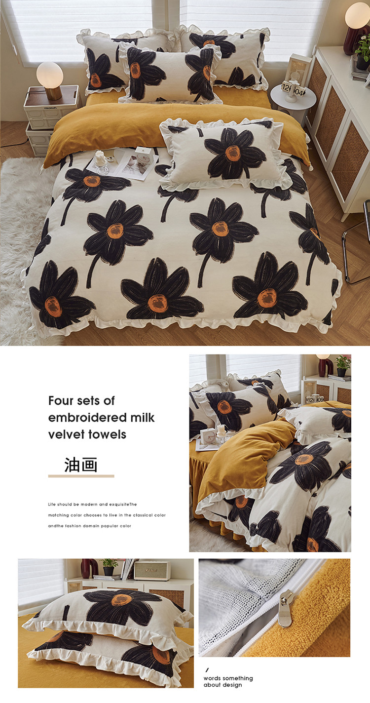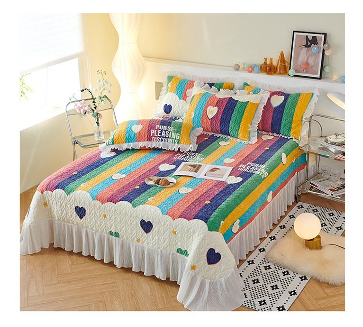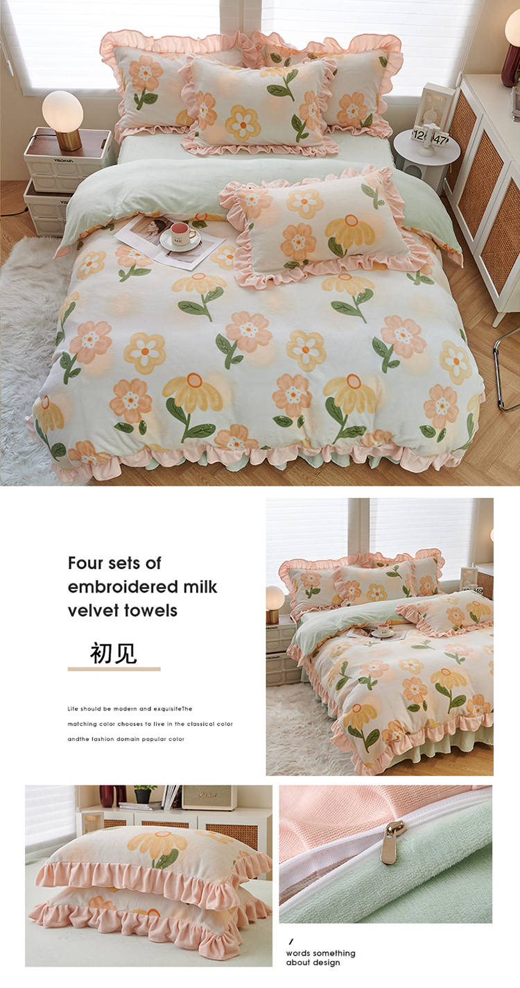 (总)2023新款高克重牛奶绒夹棉床盖三件套