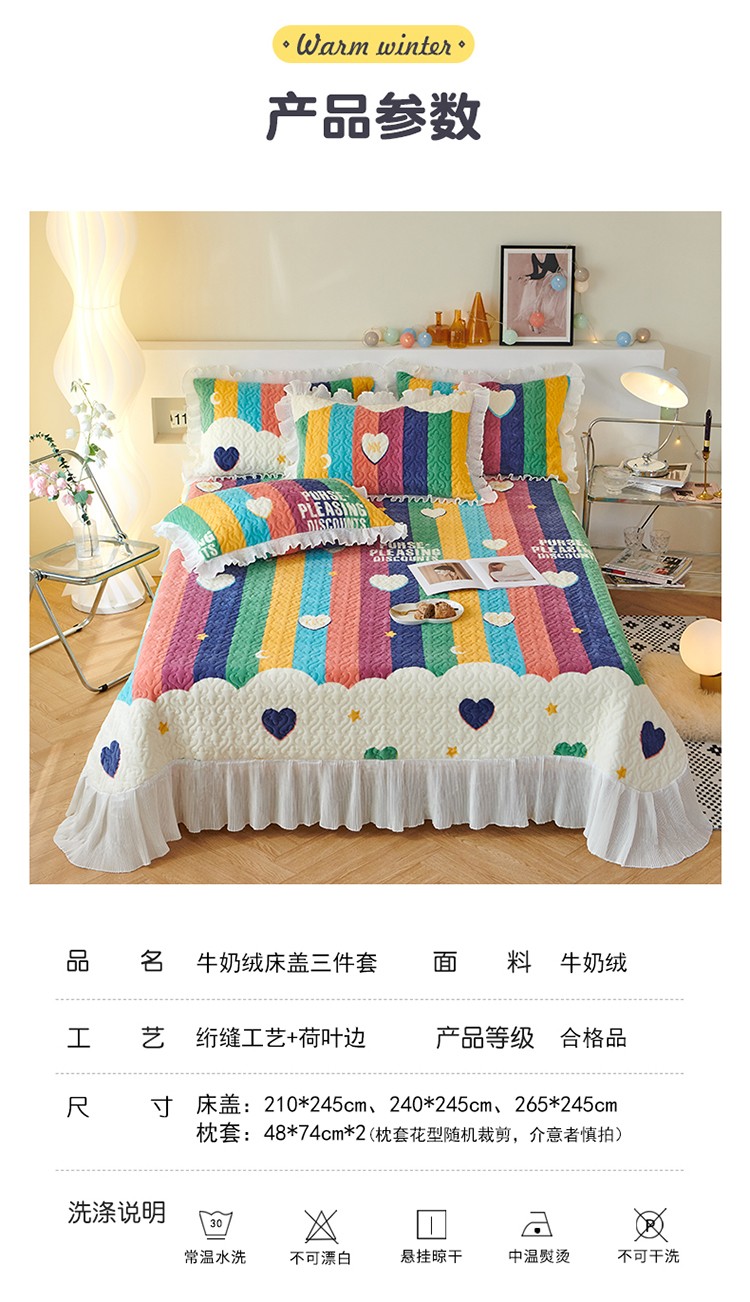商品名称:(总)2023新款高克重牛奶绒夹棉床盖三件套