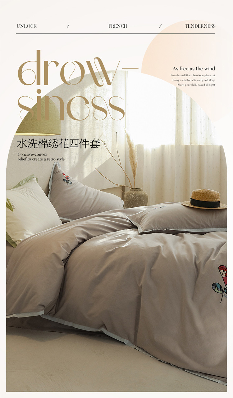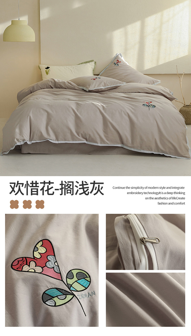 (总)名品优仓 2023新款水洗棉刺绣四件套-欢惜花