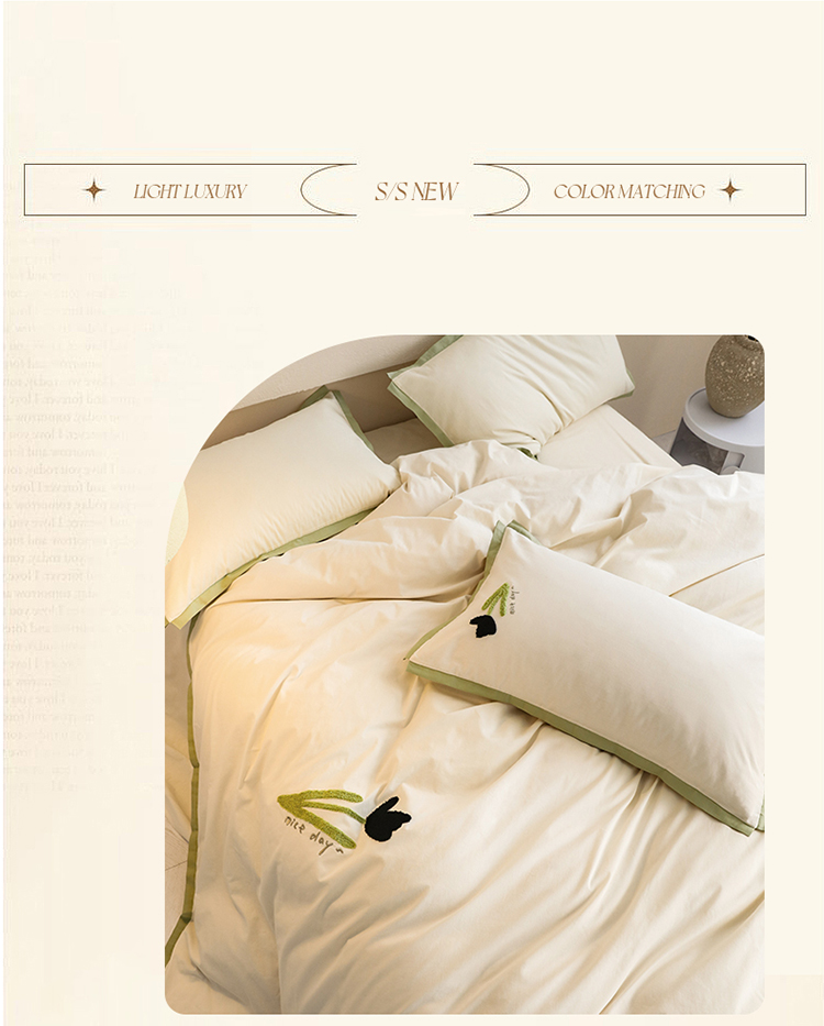 (总)名品优仓2023新款毛巾绣撞色荷叶边四件套,拾光兔,铃兰花开,爱丽兔,太阳花清爽绿,太阳花芝芝奶绿,兔然暴富