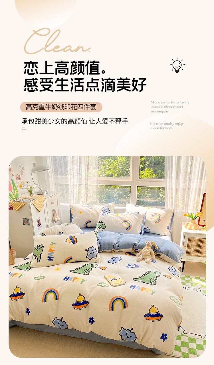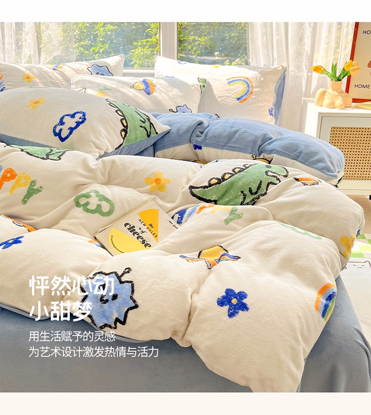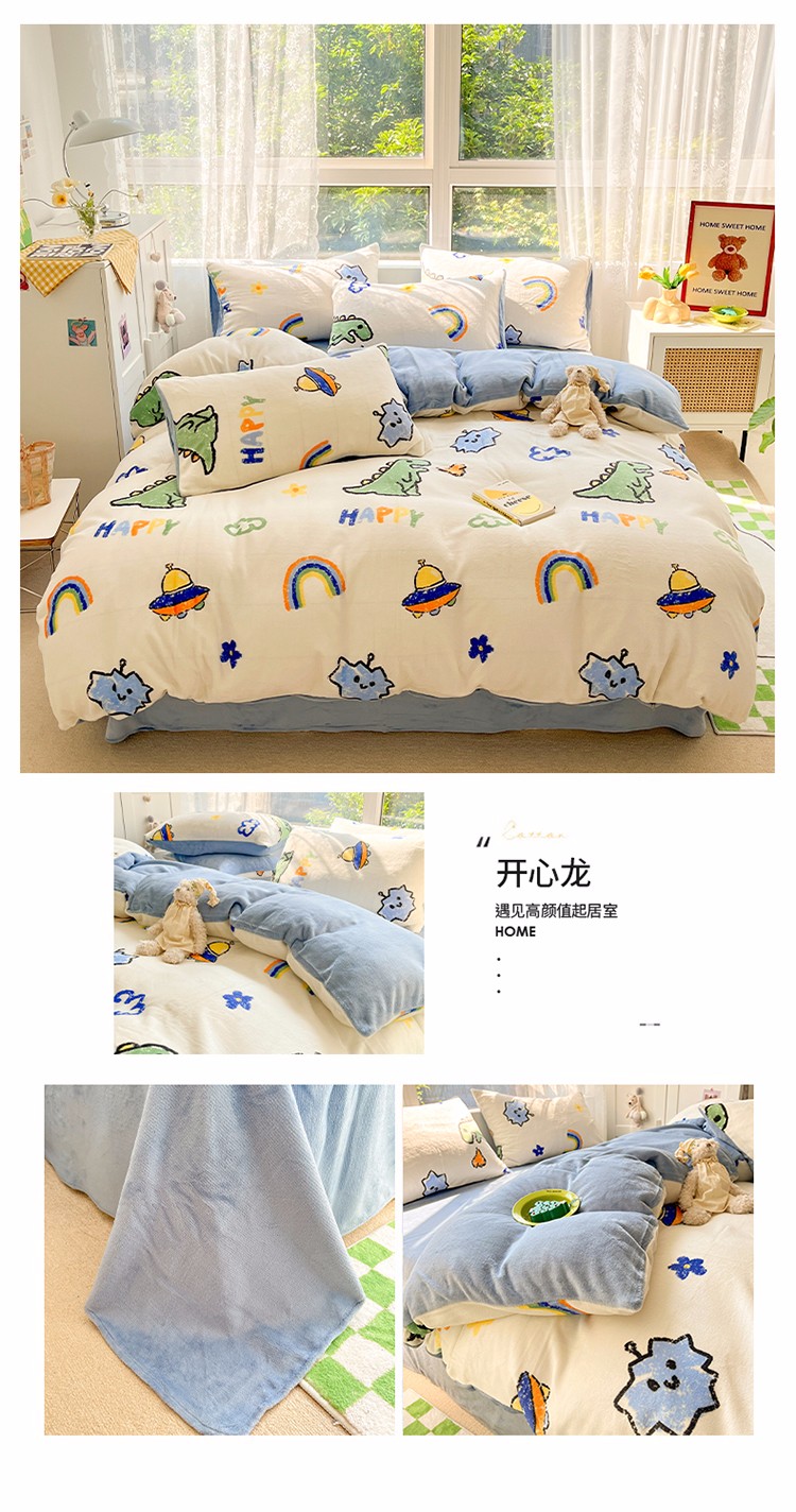 商品名称:雅居纺 2022新款牛奶绒印花四件套 开心龙