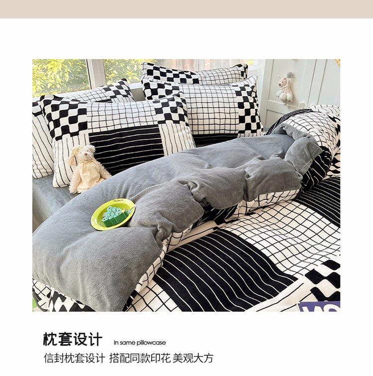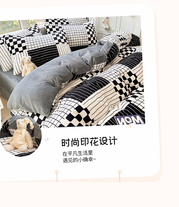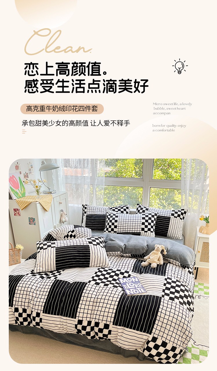 商品名称:雅居纺 2022新款牛奶绒印花四件套 四宫格